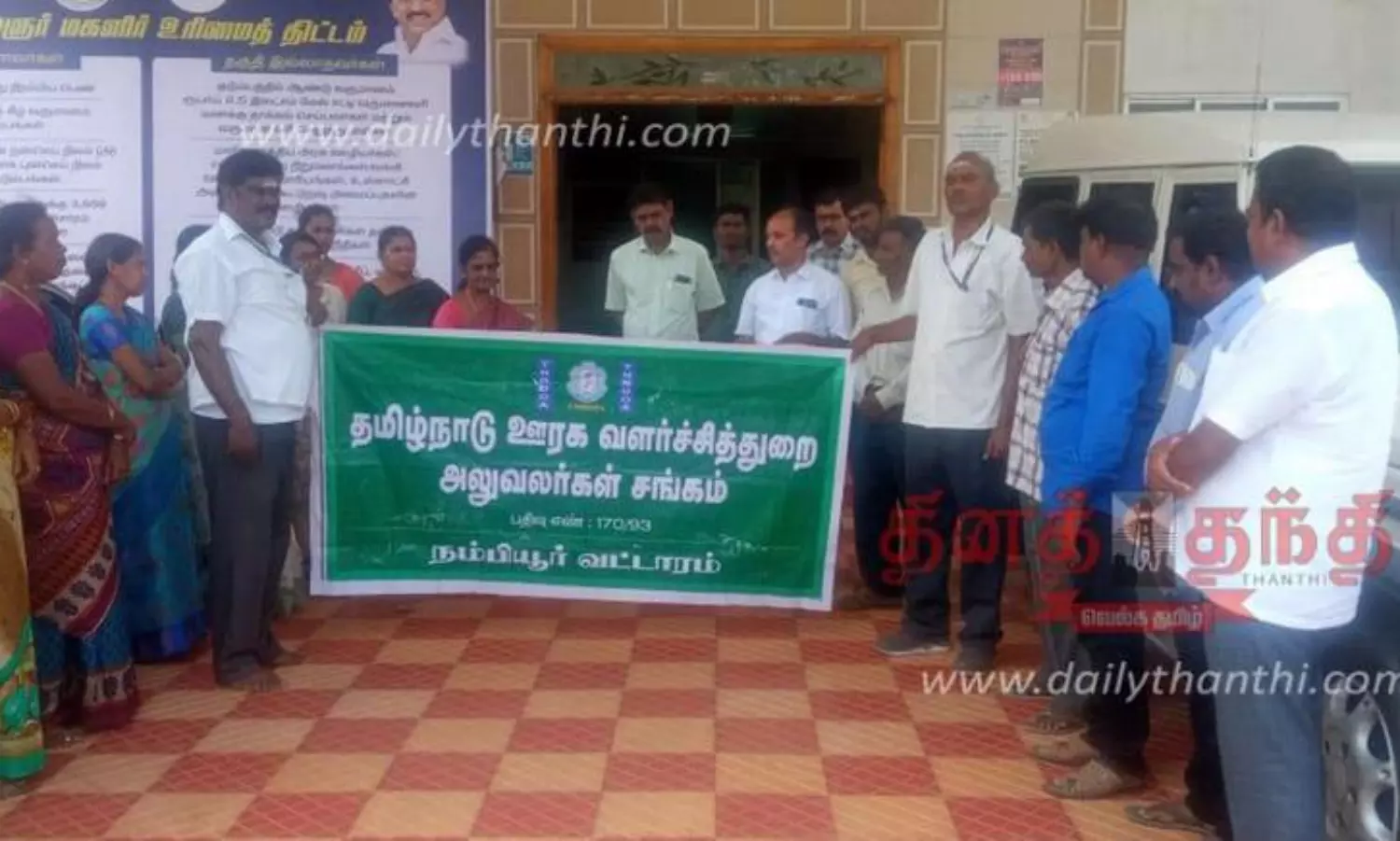 மாவட்ட துணைத்தலைவர் மணிகண்டன், வட்டார துணைத்தலைவர் வெங்கடாசலம் ஆகியோர் கலந்து கொண்டு கோரிக்கைகளை வலியுறுத்தி கோஷங்கள் எழுப்பினர். இதில் ஊரக வளர்ச்சித்துறை அலுவலர்கள் பலர் கலந்து கொண்டனர்.
