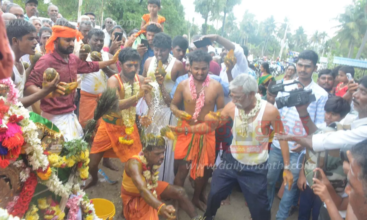 தலையில் தேங்காய் உடைத்து பக்தர்கள் நேர்த்திக்கடன்