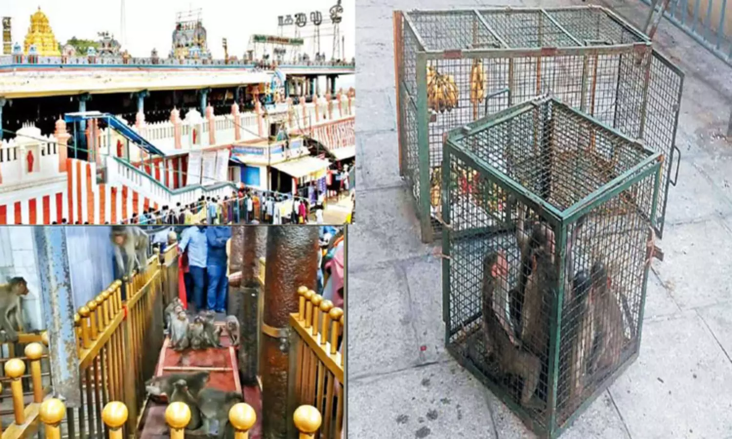 திருத்தணி முருகன் கோவிலில் பக்தர்களிடம் அட்டகாசம்: குரங்குகளை கூண்டு வைத்து பிடித்த வனத்துறையினர்
