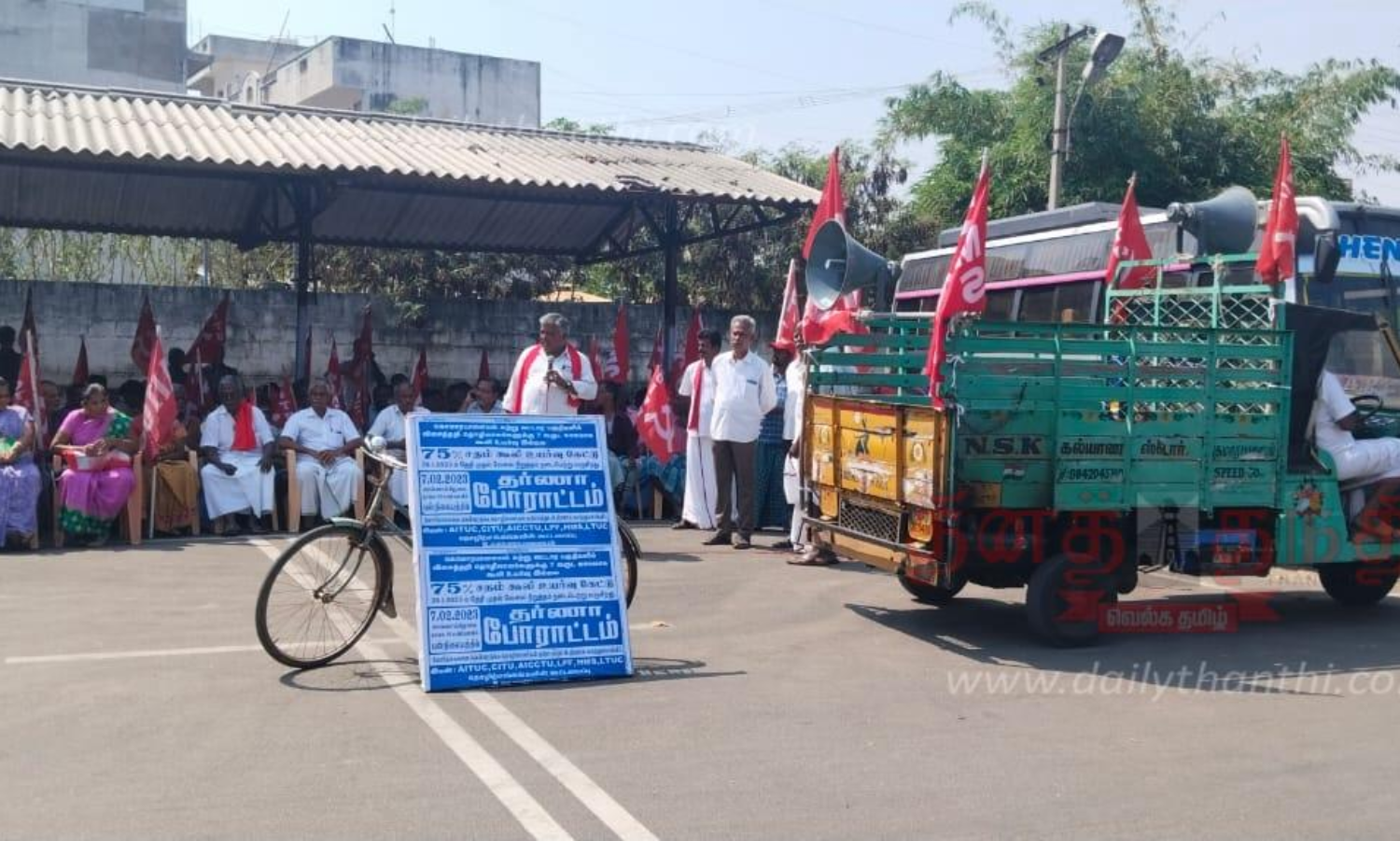 கூலி உயர்வு கேட்டு விசைத்தறி தொழிலாளர்கள் தர்ணா போராட்டம்