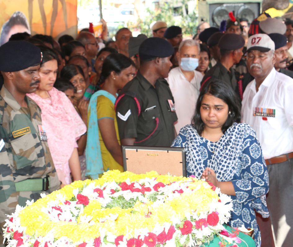 அதையடுத்து 24 துப்பாக்கி குண்டுகள் முழங்க ராணுவ மரியாதை அளிக்கப்பட்டது. பின்னர் உடல் தகனம் செய்யப்பட்டது. சிதைக்கு அவருடைய தந்தை ஆறுமுகம் தீ மூட்டினார். இந்த சம்பவத்தால் ஜெயமங்கலம் கிராமமே சோகமயமாக காணப்பட்டது.