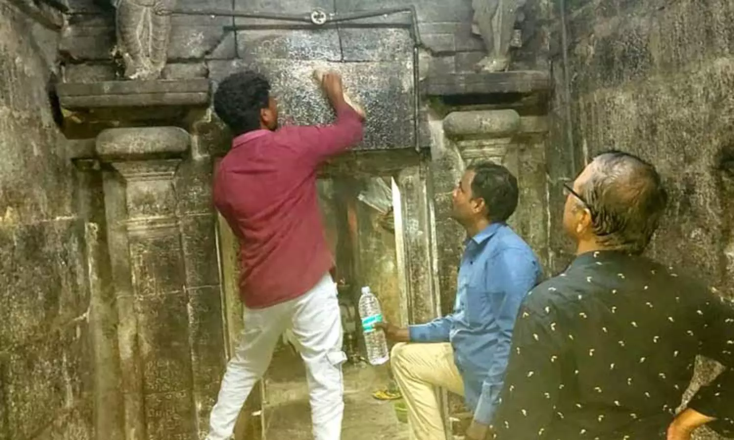 அப்போது கோவிலின் உள்ளே அர்த்த மண்டபத்தின் நுழைவுவாயிலின் மேற்புறம் சுண்ணாம்பு பூசப்பட்ட நிலையில் கல்வெட்டு இருந்ததை கண்டறிந்தனர். இந்த கல்வெட்டு சுவஸ்திஸ்ரீ மதுரை கொண்ட கோப்பர கேசரி என்று தொடங்குகிறது. இதுகுறித்து பேராசிரியர் ரமேஷ் கூறியதாவது:-