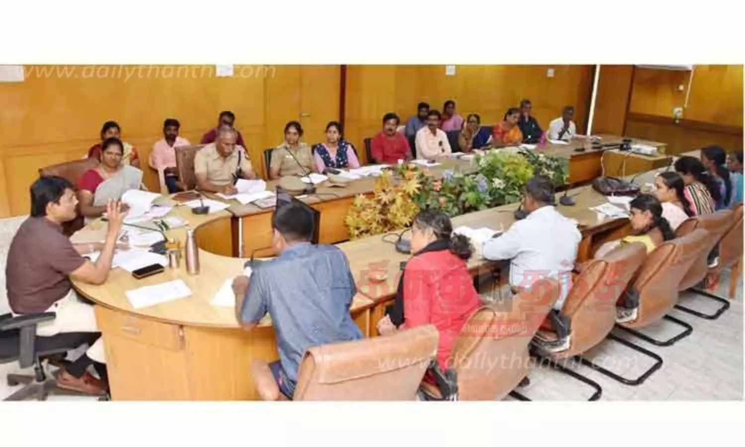 மாவட்டத்தில் குழந்தைகளுக்கு எதிராக நடைபெறும் குற்றங்கள், உரிமை மீறல்கள், குழந்தைகளுக்கு எதிரான பாலியல் துன்புறுத்தல், குழந்தை திருமணம், குழந்தை தொழிலாளர், பிச்சை எடுத்தல், கடத்தப்படுதல், பள்ளி இடைநின்றல், உடல் ரீதியான துன்புறுத்தல் ஆகிய பிரச்சினைகள் மீது துறைவாரியாக எடுக்கப்பட்ட நடவடிக்கைகள் குறித்து கலெக்டர் ஆய்வு மேற்கொண்டார்.