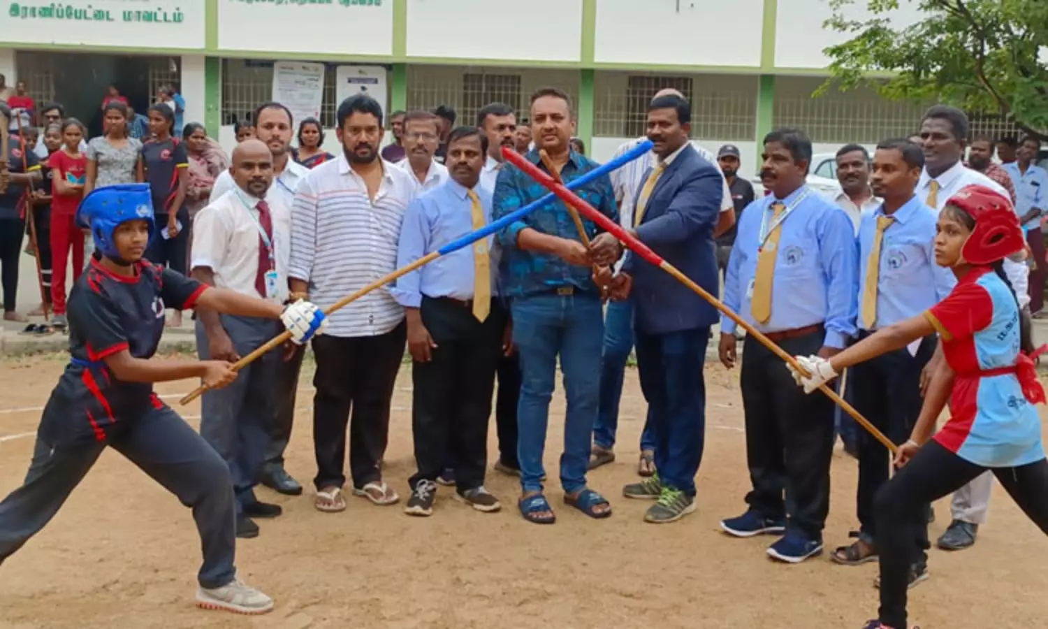 தனித்திறமை, வாள்வீச்சு, மான்கொம்பு, சுருள் வாள் வீச்சு போன்ற விளையாட்டுகளை, தி.மு.க. மாநில சுற்றுசூழல் அணி துணைசெயலாளர் வினோத்காந்தி சிறப்பு அழைப்பாளராக பங்கேற்று தொடங்கி வைத்ததோடு, வெறறிபெற்ற மாணவ- மாணவிகளுக்கு பரிசுகளை வழங்கினார். பள்ளி தலைமை ஆசிரியர் அருண்குமார் வாழ்த்துரை வழங்கினார். நகரமன்ற தலைவர் சுஜாதா வினோத், மாவட்ட பாரம்பரிய சிலம்பம் கழகத்தின் தலைவர் அசோக்குமார், செயலாளர் செமின்ராஜ், துணை செயலாளர் தமிழரசு, பொருளாளர் மனோகரன், சர்வதேச சிலம்ப கழக தலைவர் சந்தோஷ்குமார், விளையாட்டு ஆசிரியர் பாலகிருஷ்ணன் ஆகியோர் பங்கேற்றனர்.