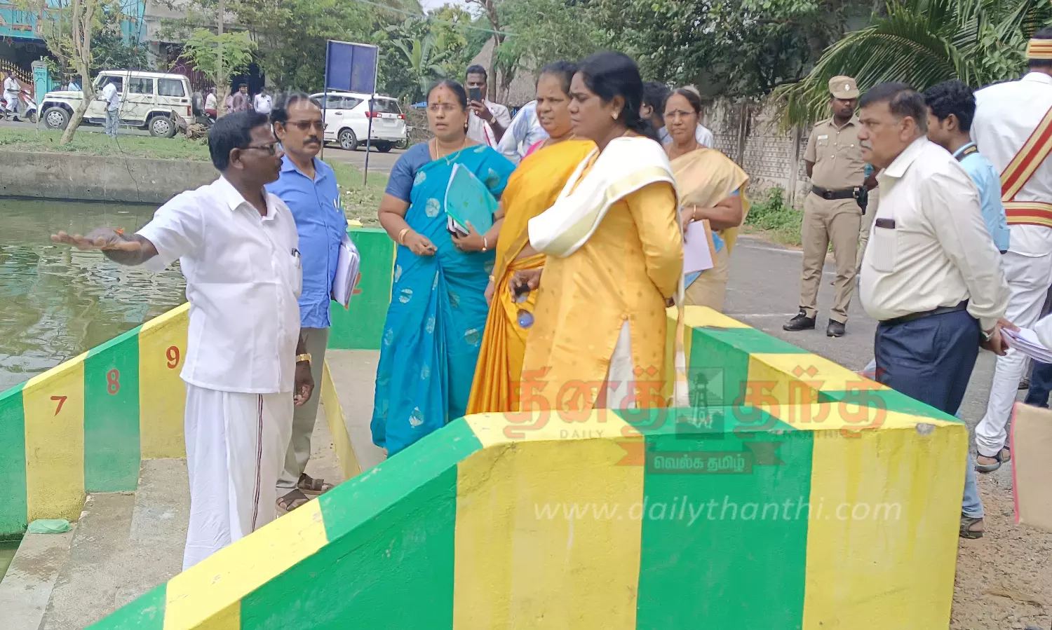 சீர்காழி ஒன்றியம் அகனி ஊராட்சி தென்னங்குடிகுளம் அண்ணா மறுமலர்ச்சி திட்டத்தின் கீழ் ரூ.13 லட்சம் மதிப்பீட்டில் தூர்வாரப்பட்டு சுற்றுச்சுவர், படித்துறை உள்ளிட்ட பணிகள் செய்யப்பட்டுள்ளன. இந்த பணியினை மாவட்ட கண்காணிப்பு அலுவலரும் ஒருங்கிணைந்த குழந்தைகள் வளர்ச்சித் திட்ட பணிகள் இயக்குனருமான அமுதவல்லி, கலெக்டர் லலிதா ஆகியோர் பார்வையிட்டு ஆய்வு செய்தார்.