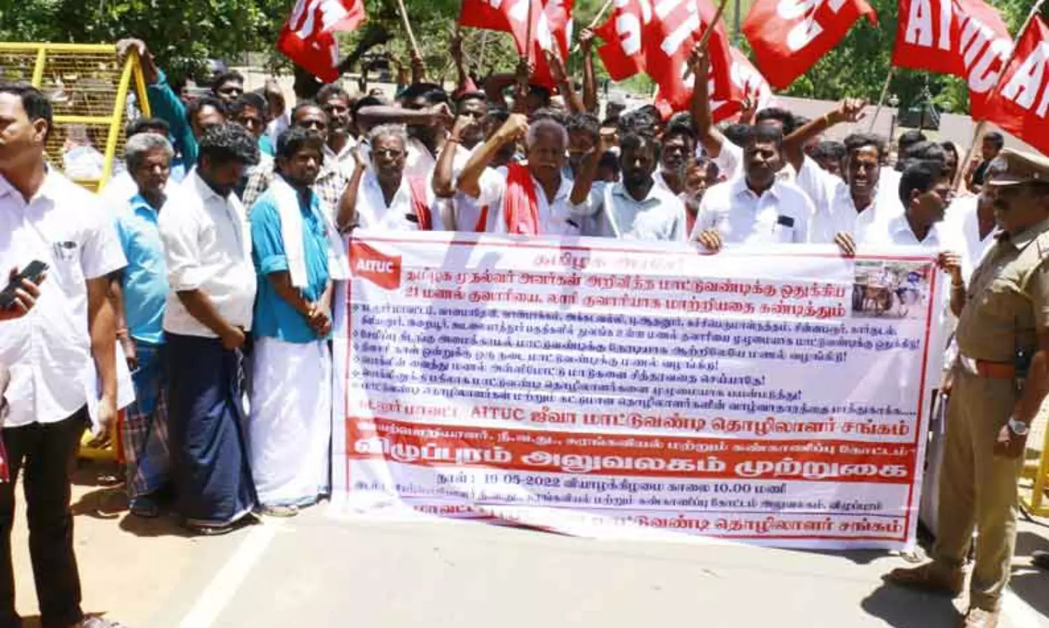 மாட்டுவண்டிக்கு ஒதுக்கிய 21 மணல் குவாரிகளை லாரி குவாரியாக மாற்றியதை கண்டித்து கடலூர் மாவட்ட மாட்டுவண்டி தொழிலாளர்கள் சங்கம் சார்பில் நீர்வளத்துறை செயற்பொறியாளர் மற்றும் சுரங்கங்கள், கண்காணிப்பு விழுப்புரம் கோட்ட அலுவலகத்தை முற்றுகையிடும் போராட்டம் நடந்தது. இந்த போராட்டத்திற்கு கடலூர் ஏ.ஐ.டி.யு. மாவட்ட தலைவர் பரணி தலைமை தாங்கினார். கடலூர் மாவட்ட தலைவர் துரை ஆகியோர் முன்னிலை வகித்தனர். சிறப்பு அழைப்பாளராக விழுப்புரம் இந்திய கம்யூனிஸ்டு கட்சி மாவட்ட பொதுசெயலாளர் சவுரிராஜன் கலந்து கொண்டு சங்க கோரிக்கைகளை நிறைவேற்ற வலியுறுத்தி கண்டன உரையாற்றினார்.