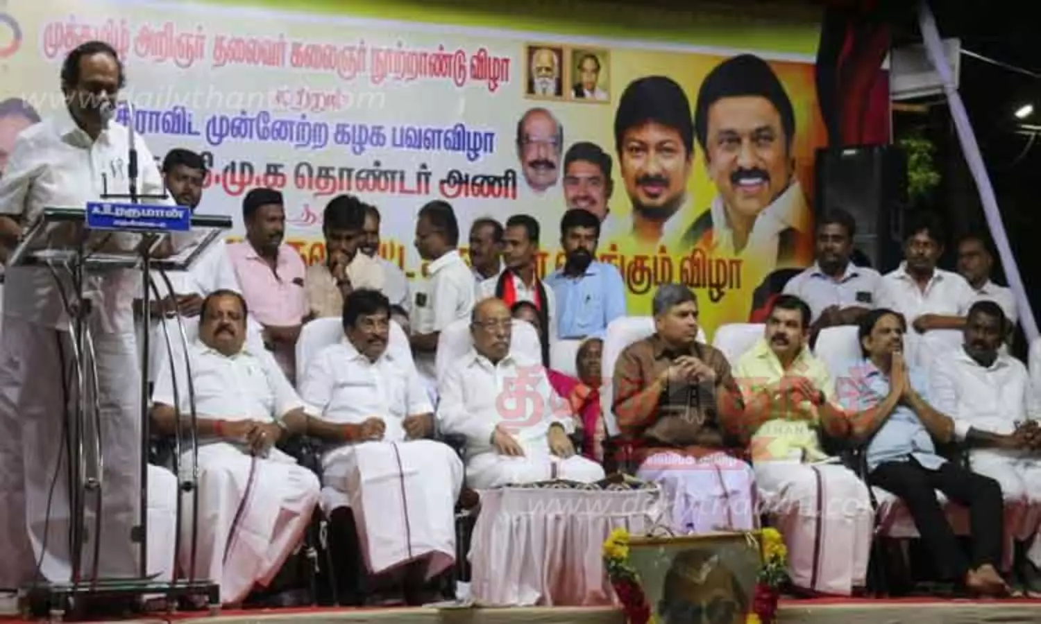 நெல்லை மாநகர தி.மு.க. தொண்டரணி சார்பில் நெல்லை மேலப்பாளையம் பஜார் திடலில் கலைஞர் நூற்றாண்டு விழா பொதுக்கூட்டம் மற்றும் நலத்திட்ட உதவிகள் வழங்கும் நிகழ்ச்சி நடந்தது. தி.மு.க. மாநகர செயலாளர் சுப்பிரமணியன் தலைமை தாங்கினார். மாநகர துணை செயலாளர் அப்துல்கையூம் முன்னிலை வகித்தார். சிறப்பு அழைப்பாளராக மாநில கொள்கை பரப்பு செயலாளரும், தமிழ்நாடு பாடநூல்கழக தலைவருமான திண்டுக்கல் ஐ.லியோனி கலந்து கொண்டு பேசினார்.