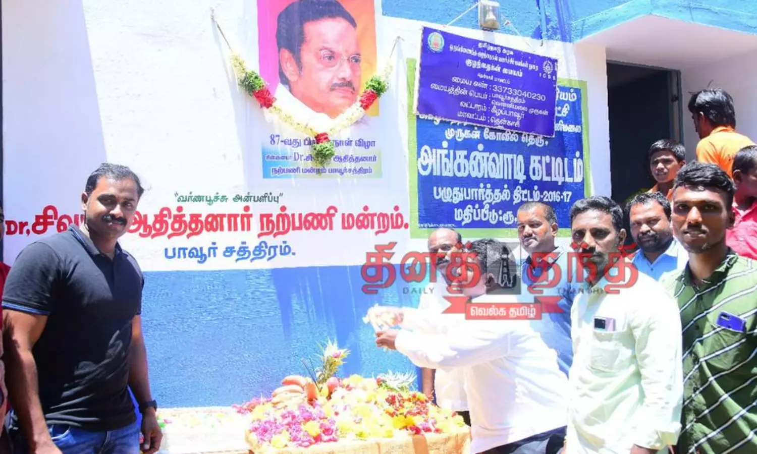 பாவூர்சத்திரம் டாக்டர் சிவந்தி ஆதித்தனார் நற்பணி மன்றம் சார்பில் பாவூர்சத்திரம் காமராஜ்நகர் அங்கன்வாடி மையத்தில் பத்மஸ்ரீ டாக்டர் பா.சிவந்தி ஆதித்தனார் பிறந்தநாள் விழா கொண்டாடப்பட்டது. இதையொட்டி அங்கன்வாடி மைய குழந்தைகளுக்கு கேக் வழங்கப்பட்டது. நிகழ்ச்சியில் மன்ற நிர்வாகிகள் மாயாண்டி பாரதி, பரமசிவன், ஈஸ்வர பாரதி, பால் கண்ணன் மற்றும் உறுப்பினர்கள், சிவந்தி ஆதித்தனார் கபடி குழு வீரர்கள் கலந்து கொண்டனர்.