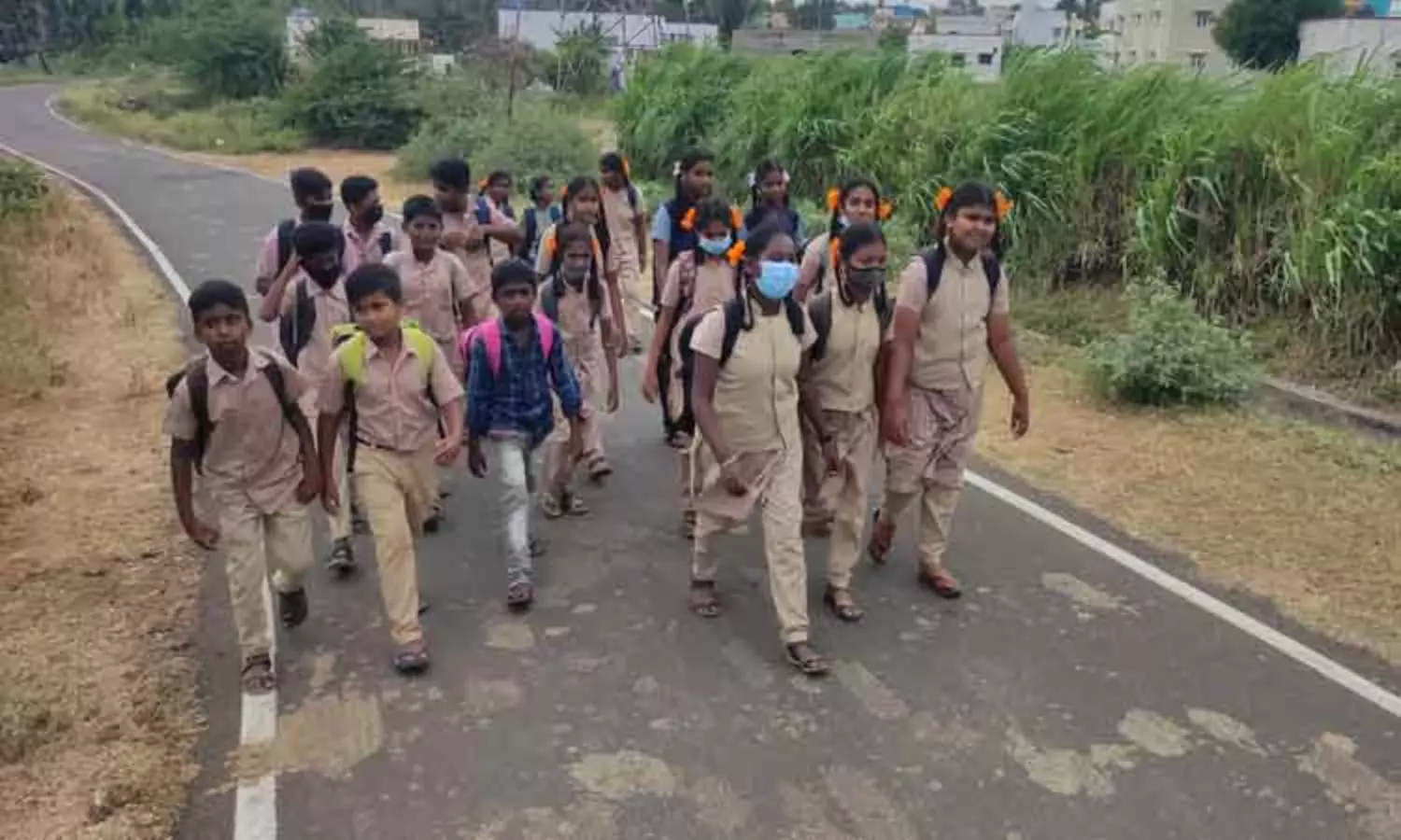 உரிய நேரத்தில் பஸ்கள் இல்லாததால் 2 கிலோ மீட்டர் தூரம் நடந்து செல்லும் மாணவ-மாணவிகள்-உரிய நடவடிக்கை எடுக்க பெற்றோர் கோரிக்கை