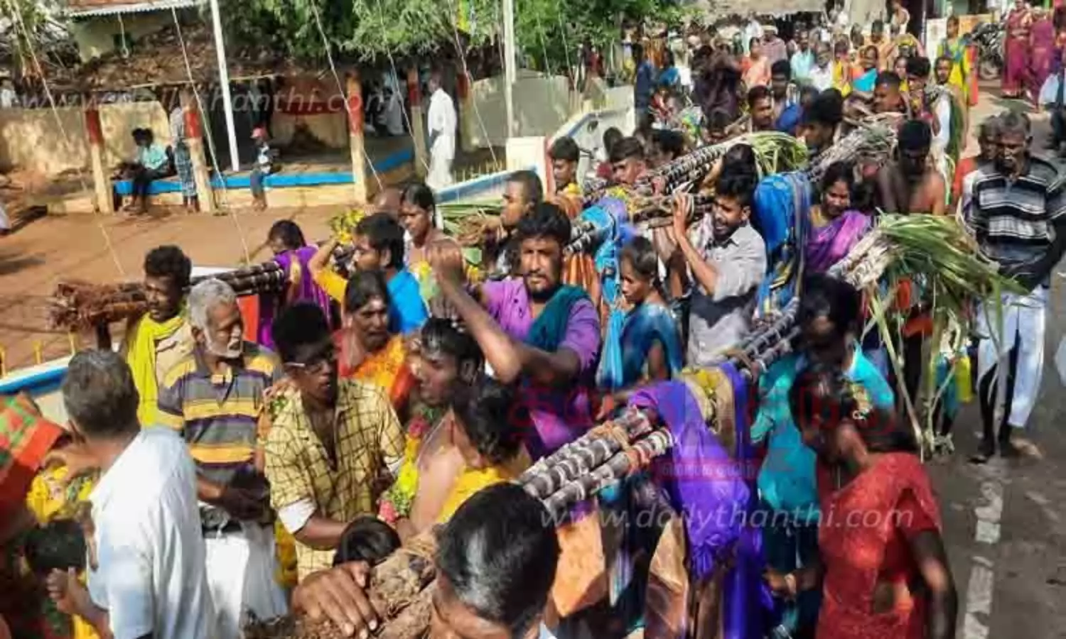 கரும்பு தொட்டில் தூக்கி பக்தர்கள் நேர்த்திக்கடன்