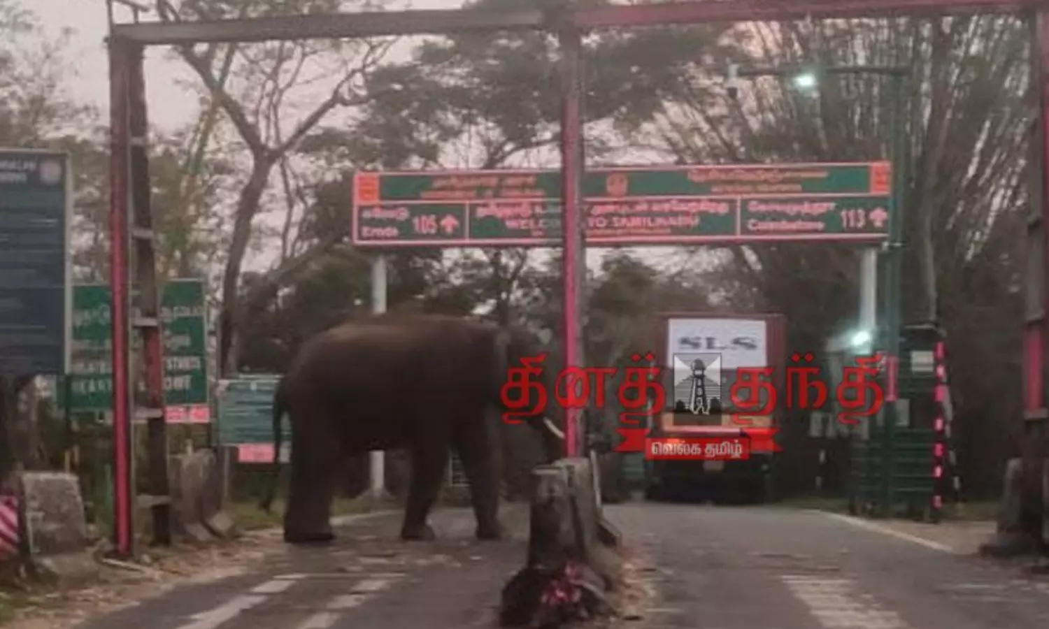 காரப்பள்ளம் சோதனை சாவடியை முற்றுகையிட்ட ஒற்றை யானை;