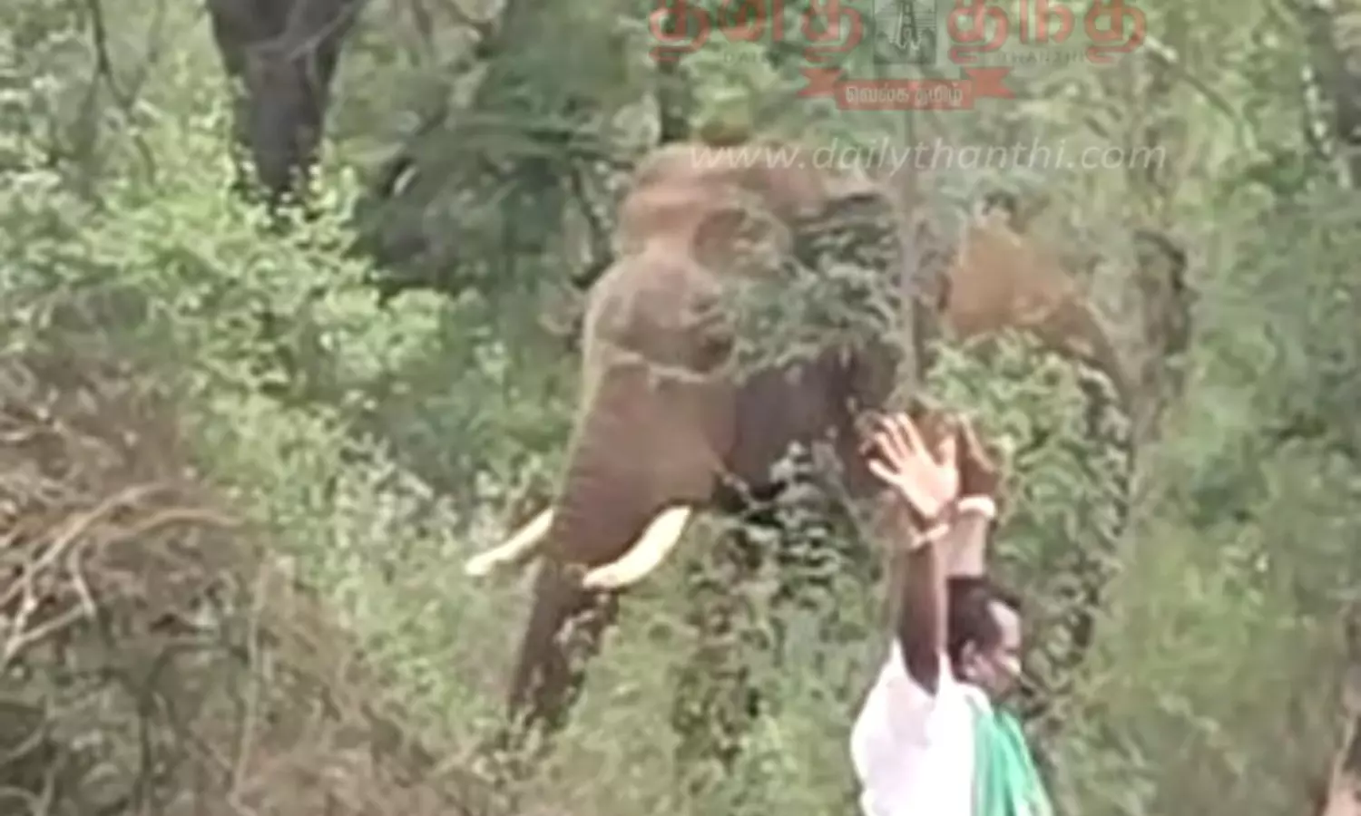 பென்னாகரம்- ஒகேனக்கல் சாலையில் சுற்றித்திரியும் காட்டு யானையை ஒருவர் வணங்கும் வீடியோ காட்சிகள்சமூக வலைத்தளத்தில் வைரலானது