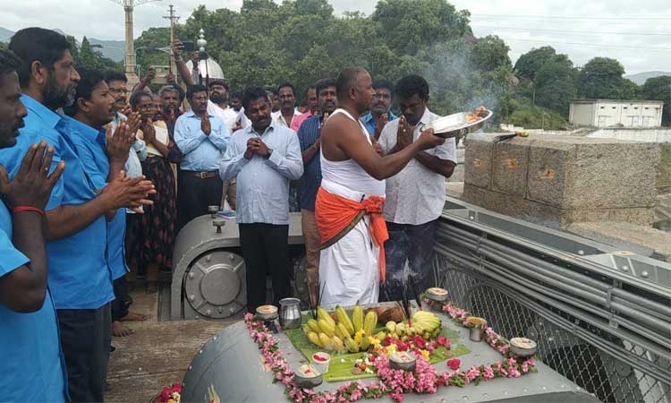 இதனையடுத்து அணையின் இடது கரையான 16 கண் பாலம் பகுதியில் காவிரி அன்னைக்கு சிறப்பு பூஜைகள் நடைபெற்றது. தேங்காய் பழம் வைத்து கற்பூர ஆரத்தி காட்டு காவிரி அன்னைக்கு சிறப்பு வழிபாடு நடைபெற்றது.
