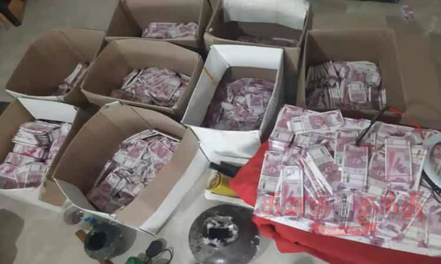 மேலும் அங்கு 9 அட்டை பெட்டிகளில் 2 ஆயிரம் ரூபாய் போலி நோட்டுகள் கட்டுக்கட்டாக இருந்தன. அவை கள்ள நோட்டுகள் என்று கருதி போலீசார் பறிமுதல் செய்தனர்.