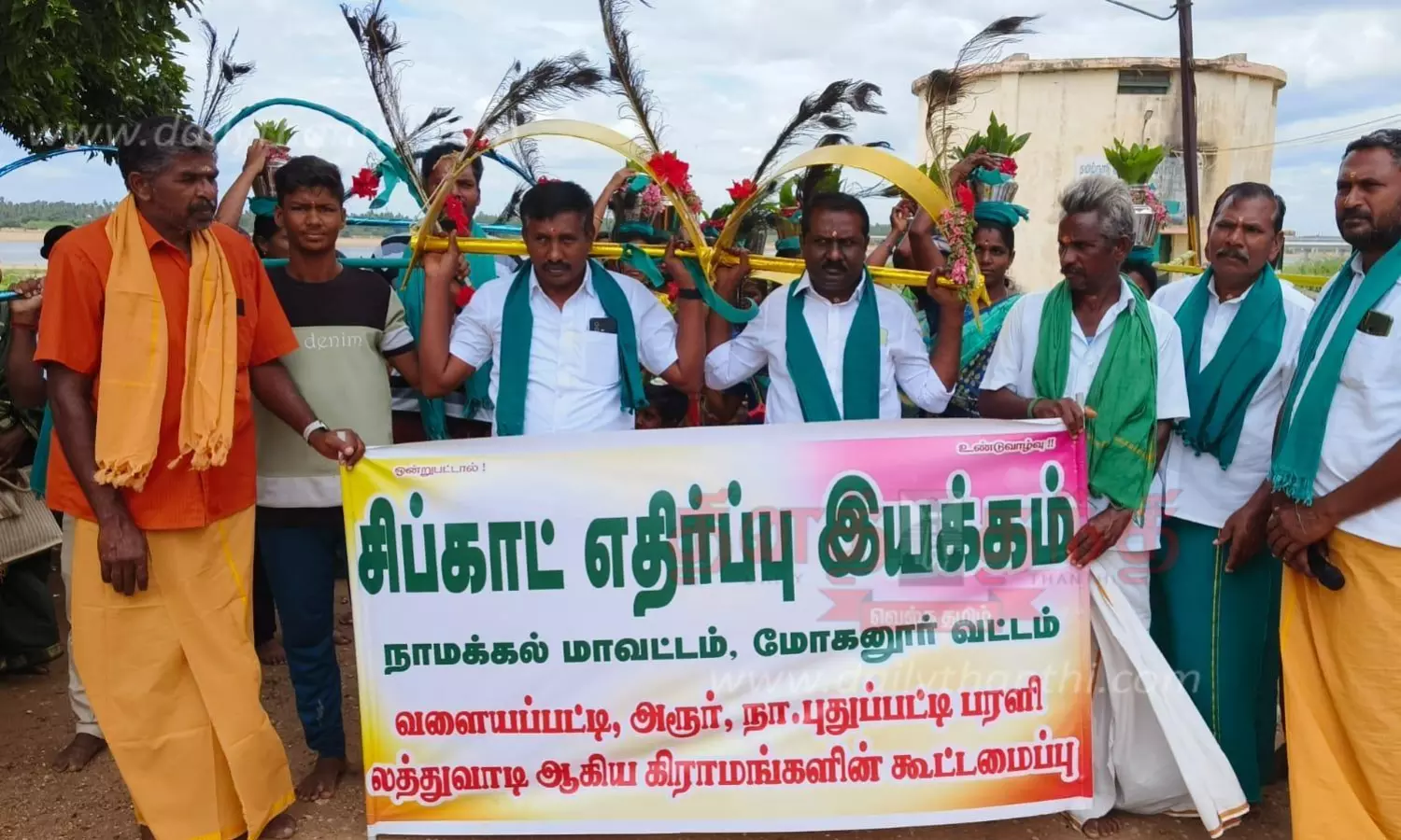 போராட்டத்திற்கு விவசாய முன்னேற்ற கழக பொதுச்செயலாளர் பாலசுப்பிரமணி தலைமை தாங்கினார். கொ.ம.தே. கட்சி ஒருங்கிணைந்த மாவட்ட விவசாய அணி செயலாளர் ரவிச்சந்திரன், சிப்காட் எதிர்ப்புக் குழு ஒருங்கிணைப்பாளர் ராம்குமார் ஆகியோர் முன்னிலை வகித்தனர். இதில் பா.ஜ.க. மாவட்ட நிர்வாகி பிரபாகரன் உள்ளிட்ட அரசியல் கட்சி நிர்வாகிகள், விவசாயிகள் கலந்துகொண்டனர். மோகனூர் போலீஸ் இன்ஸ்பெக்டர் தங்கவேல் தலைமையில் போலீசார் பாதுகாப்பு பணியில் ஈடுபடுத்தப்பட்டனர்.