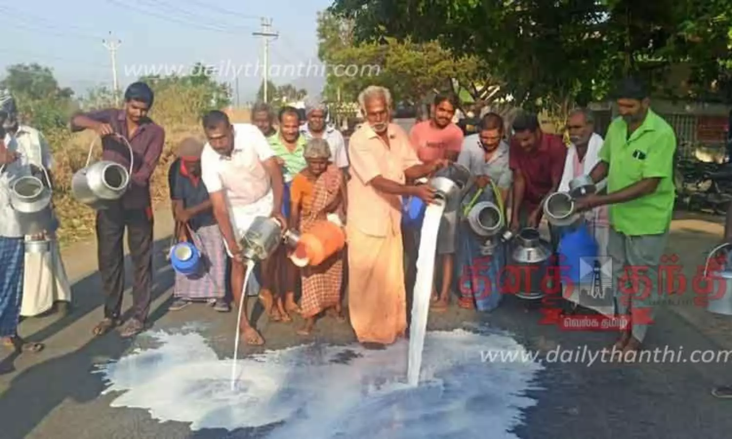 பாலை தரையில் கொட்டி உற்பத்தியாளர்கள் போராட்டம்