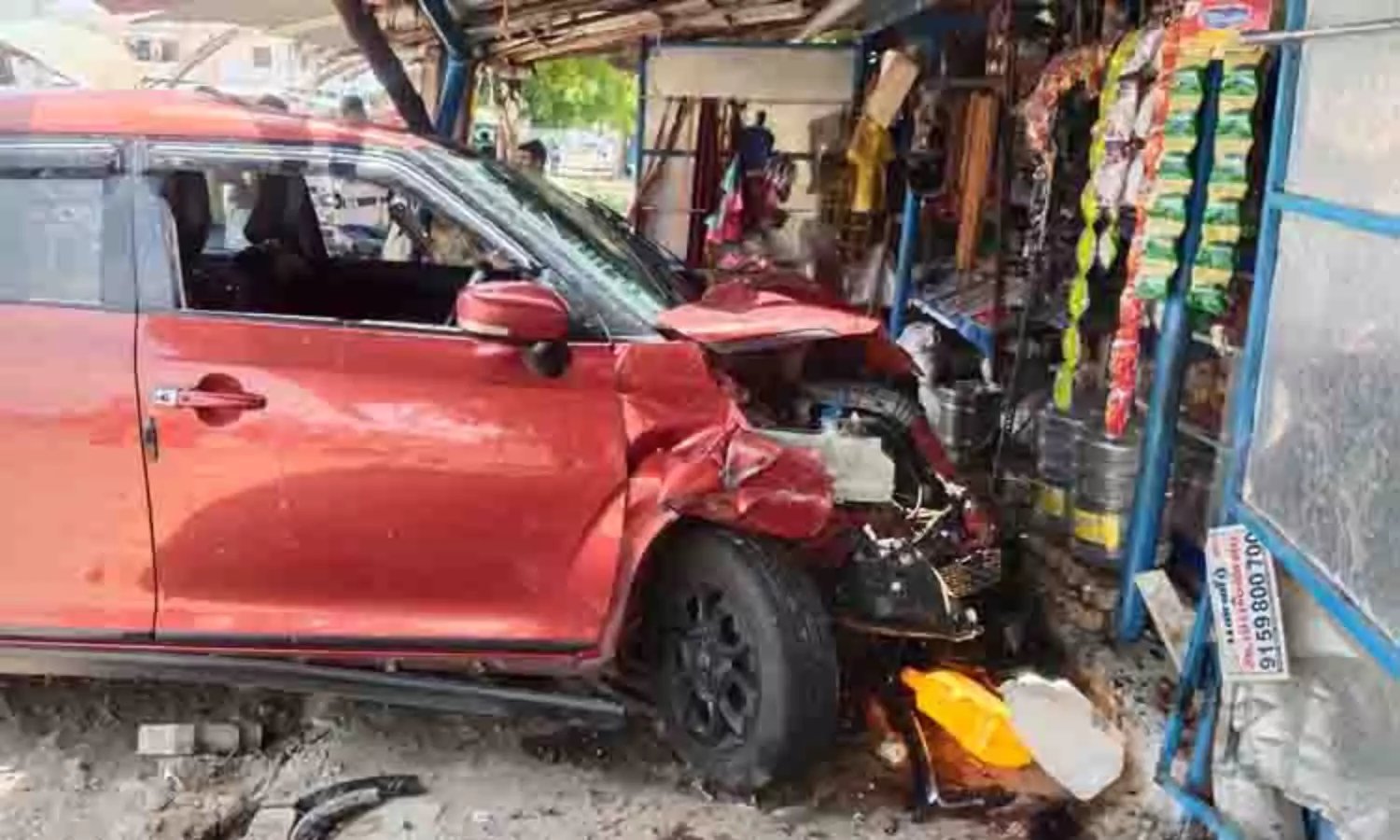 கரூர் வாங்கல் குப்புச்சிபாளையம் காமாட்சி அம்மன் கோவில் தெருவை சேர்ந்தவர் மலர்கொடி (வயது 42). இவர் கரூர் காந்திகிராமம் பகுதியில் உள்ள அரசு உதவிபெறும் பள்ளியில் சத்துணவு அமைப்பாளராகவும், வாங்கல் பகுதியில் உள்ள அரசு பள்ளியில் கூடுதல் சத்துணவு அமைப்பாளராகவும் பணிபுரிந்து வந்தார். இந்நிலையில் நேற்று காலையில் கரூர் காந்திகிராமம் பகுதியில் உள்ள பள்ளிக்கு சென்று பணியை பார்வையிட்டு தொடர்ந்து வாங்கல் பகுதியில் உள்ள அரசு பள்ளிக்கு செல்ல மொபட்டில் கரூர்-வாங்கல் சாலையில் வேட்டைகாரன்புதூர் பகுதியில் சென்று கொண்டிருந்தார். அப்போது சேலம் மாவட்டம், கிச்சிபாளையத்தை சேர்ந்த ஞானபிரகாசம் (42) சேலத்தில் இருந்து வாங்கல் வழியாக கரூரை நோக்கி காரில் வந்தார்.