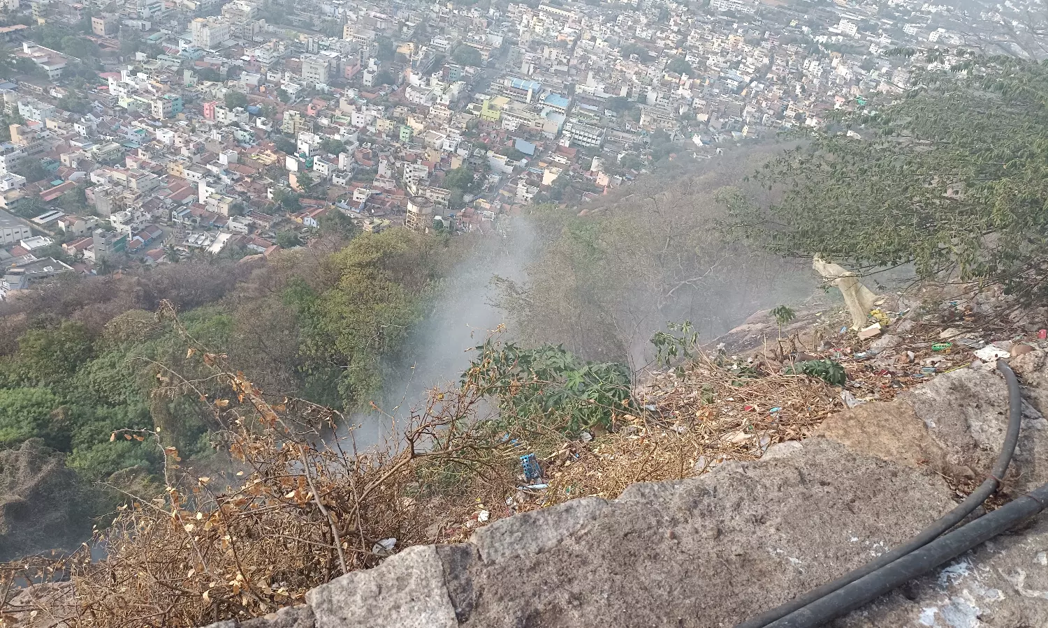 திருச்செங்கோடு அர்த்தநாரீஸ்வரர் மலையில் வெயிலின் தாக்கத்தால் நேற்று திடீரென தீப்பிடித்தது. இதுகுறித்து திருச்செங்கோடு தீயணைப்பு நிலையத்துக்கு கோவில் நிர்வாகத்தினர் தகவல் அளித்தனர். அதன்பேரில் நிலைய அலுவலர் குணசேகரன் தலைமையில் தீயணைப்பு வீரர்கள் விரைந்து சென்று, தண்ணீரை பீய்ச்சி அடித்தனர். சுமார் 3 மணி நேர போராட்டத்துக்கு பிறகு தீ கட்டுக்குள் வந்தது. இந்த தீ விபத்தால் சில மரங்கள் கருகின. கோவிலுக்கு வரும் பக்தர்கள் எளிதில் தீப்பற்றக்கூடிய பொருட்களை எடுத்து வர வேண்டாம் என்றும், மலைப்பகுதியில் குப்பைகளை வீசக்கூடாது என்றும் தீயணைப்பு துறையினர் அறிவுறுத்தி உள்ளனர்.