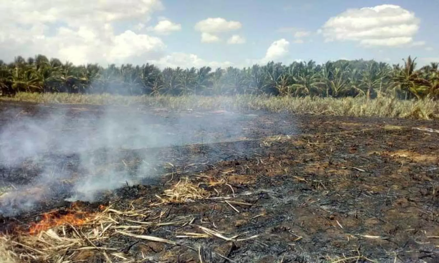 இதன் மதிப்பு ஆயிரக்கணக்கில் இருக்கும். அருகிலிருந்த தோப்பில் காய்க்கும் நிலையிலிருந்த 100 தென்னை மரங்கள் தீயினால் எரிந்து கருகி பாதிப்படைந்துள்ளது. இதனால் விவசாயிகளுக்கு அதிக அளவில் இழப்பு ஏற்பட்டுள்ளது. இதுகுறித்து அரசு உரிய நடவடிக்கை எடுத்து நிவாரணம் வழங்க வேண்டும்.