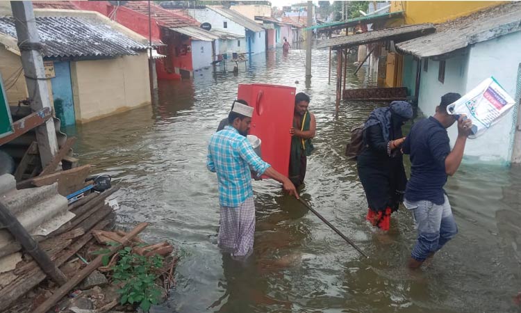 ஈரோடு மாவட்டம் கொடுமுடி இலுப்பை தோப்பு பகுதியில் மொத்தம் சுமார் 75 குடியிருப்புகளில் 35 வீடுகள் வெள்ள நீரால் சூழ்ந்துள்ளது. இதனால் பாதிக்கப்பட்ட பொதுமக்கள் மாவட்ட நிர்வாகம் மற்றும் பேரூராட்சி சார்பில் ஏற்பாடு செய்யப்பட்டுள்ள இரண்டு தனியார் முகாம்களில் தங்க வைக்கப்பட்டுள்ளனர்.