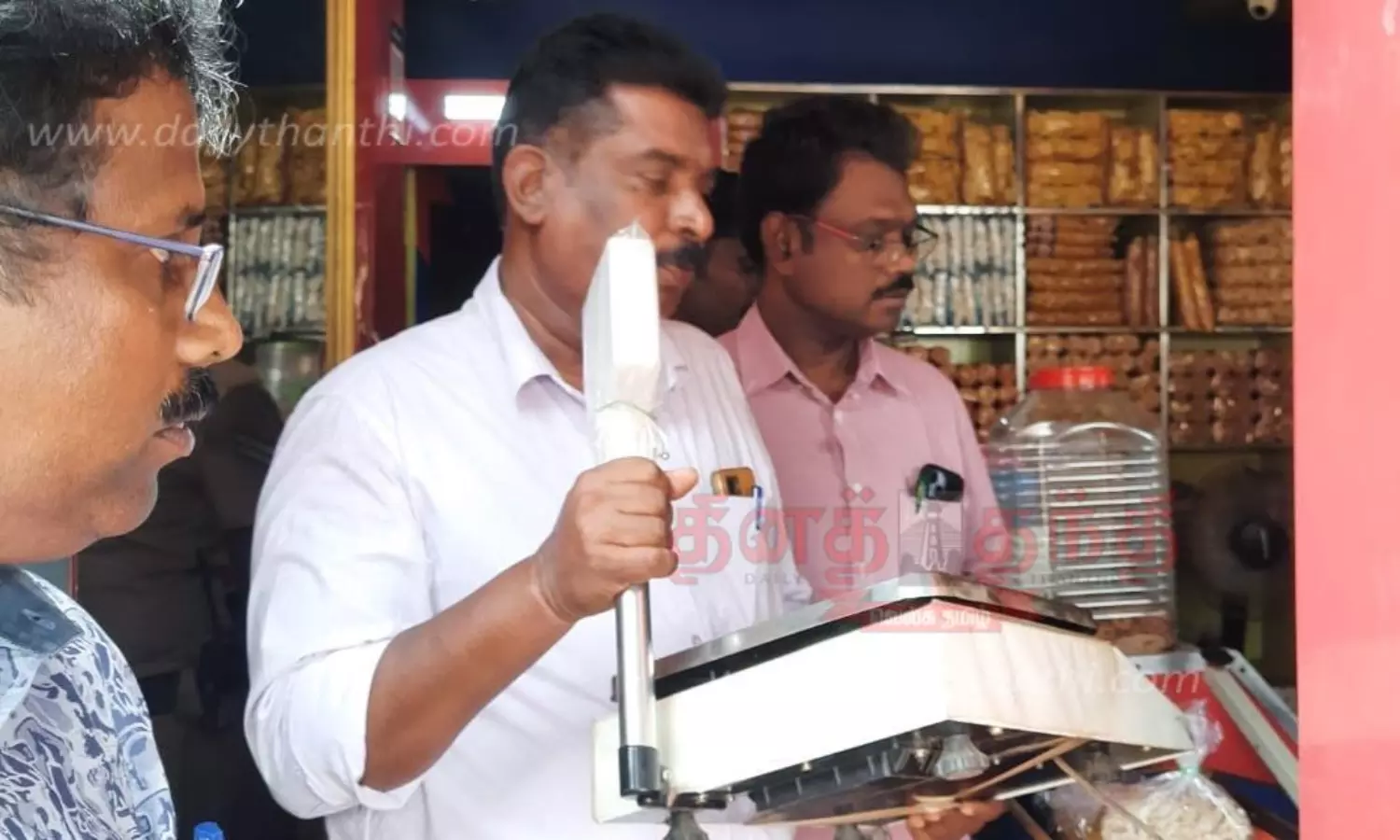 ராமநாதபுரம் மாவட்ட கலெக்டர் விஷ்ணுசந்திரன் அறிவுறுத்தலின்பேரில் தொழிலாளர் உதவி ஆணையர் பாரி தலைமையில் தொழிலாளர் துணை ஆய்வாளர், உதவி ஆய்வாளர்கள் மற்றும் முத்திரை ஆய்வாளர்கள் ராமநாதபுரம் நகர் பகுதியில் உள்ள தெருவோர கடைகள், பழக்கடைகள், மீன்கடைகள், கறிக்கடைகள் உள்பட அனைத்து கடைகளிலும் ஆய்வு மேற்கொண்டனர். அப்போது மறுமுத்திரை இல்லாமல் பயன்பாட்டில் வைத்திருந்த 32 மின்னணு தராசுகள், 9 மேஜை தராசுகள், 9 விட்ட தராசுகள், 32 இரும்பு எடைக்கற்கள், 16 ஊற்றல் அளவைகள் என மொத்தம் 94 எடை அளவைகள் பறிமுதல் செய்யப்பட்டது. இனிவரும் காலங்களில் வணிகர்கள் மறுமுத்திரையிடாத எடையளவுகளை பயன்பாட்டில் வைத்திருந்தால் சட்டப்படி கடும் நடவடிக்கை எடுக்கப்படும் என எச்சரித்தனர். இந்த தகவலை ராமநாதபுரம் தொழிலாளர் உதவி ஆணையர் (அமலாக்கம்) பாரி தெரிவித்தார்.