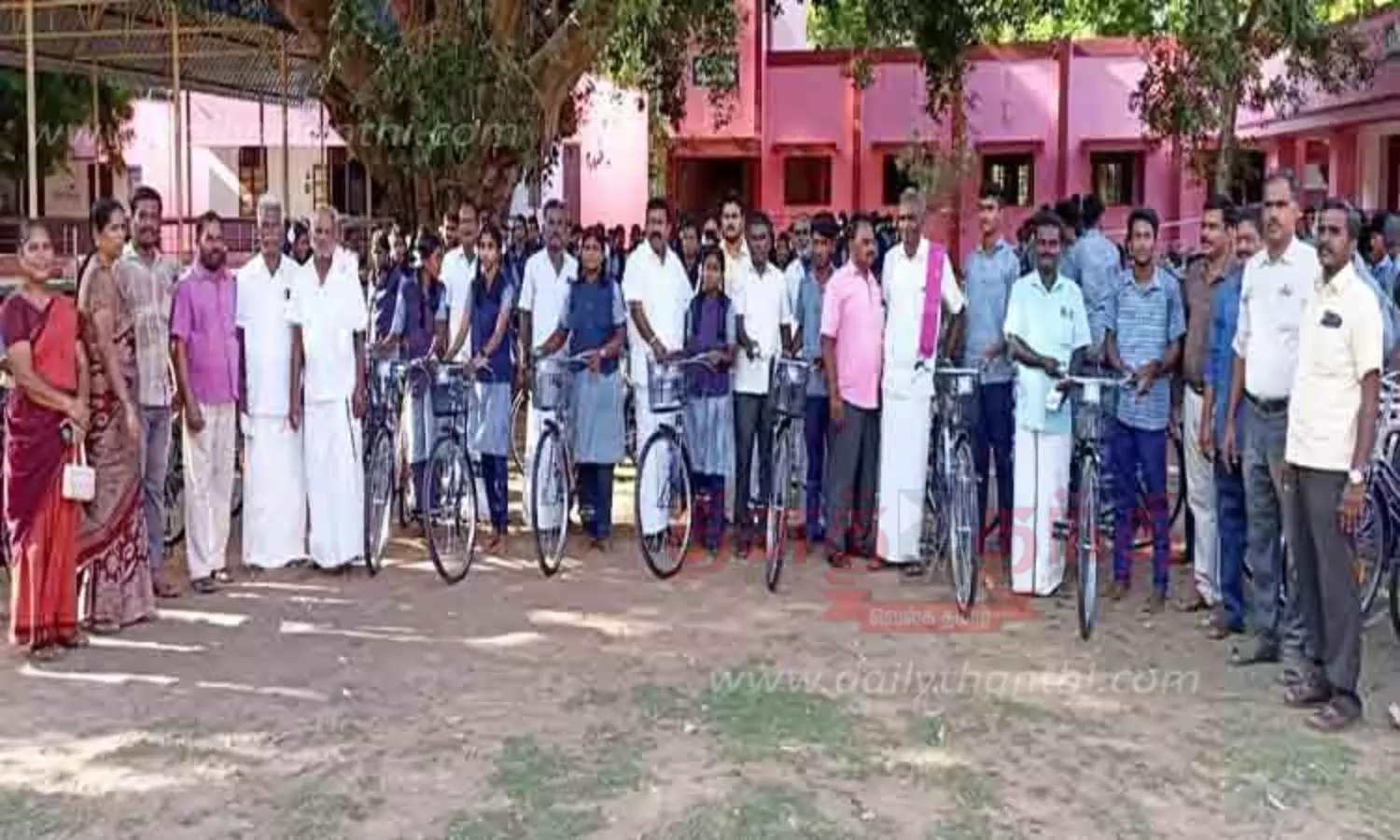 மாணவ, மாணவிகளுக்கு விலையில்லா சைக்கிள் வழங்கப்பட்டது.;