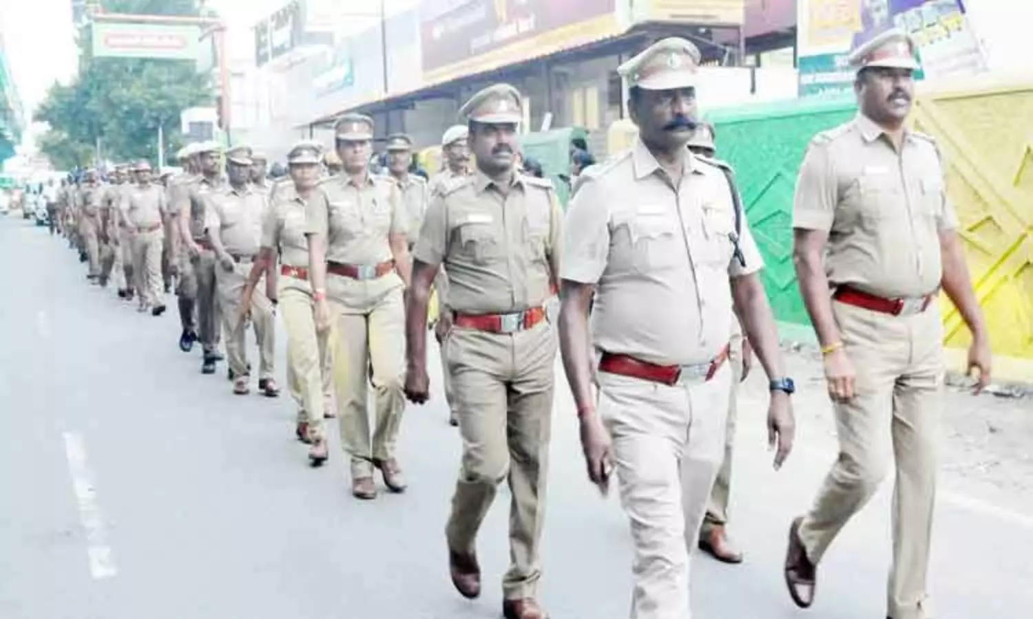ஈரோடு மாநகர் பகுதியில் போலீஸ் பாதுகாப்பை உறுதி செய்யும் வகையில் கொடி அணிவகுப்பு நேற்று மாலை நடந்தது.