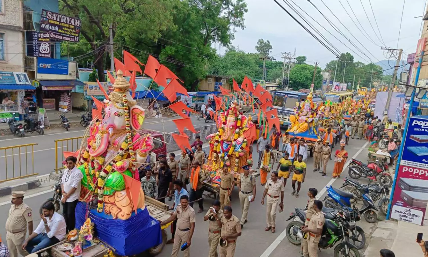பலத்த பாதுகாப்புடன் விநாயகர் சிலைகள் ஊர்வலம்