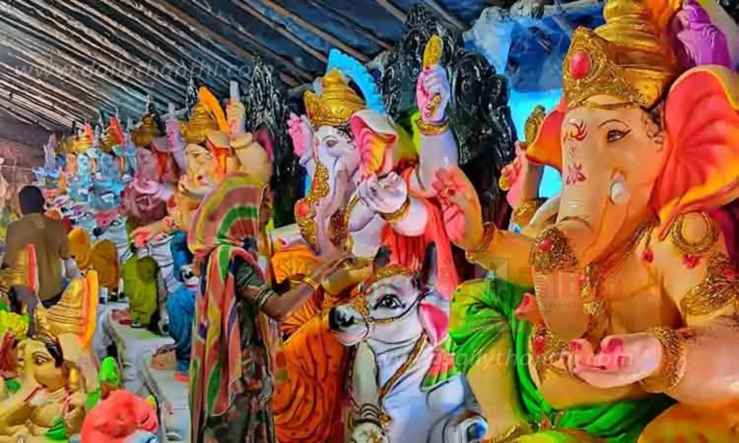 விநாயகர் சதுர்த்திக்கு இன்னும் சில நாட்களே உள்ள நிலையில் மதுரையில் வடமாநிலத்தவர்கள் தயாரித்த விநாயகர் சிலைகள் தயார் நிலையில் வைக்கப்பட்டுள்ளதை காணலாம்.