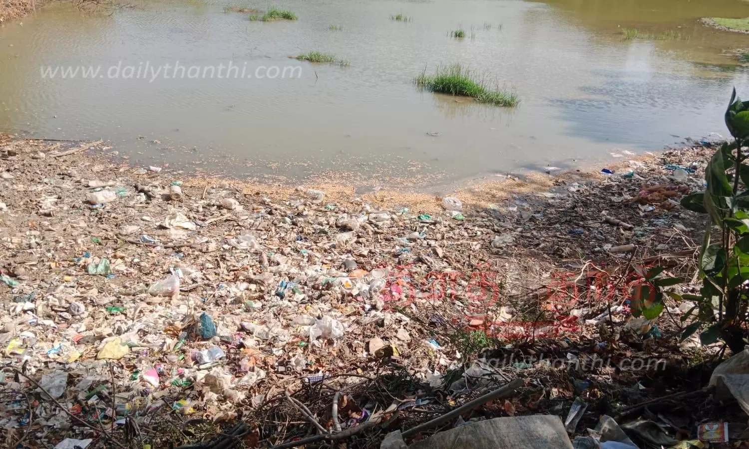 வைத்தியம்பேட்டை குளத்தில் தேங்கி கிடக்கும் குப்பைகள்
