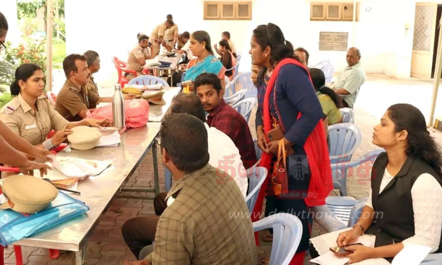நாகர்கோவில், கன்னியாகுமரி, தக்கலை மற்றும் குளச்சல் போலீஸ் துணை சரகங்களுக்கு உட்பட்ட பகுதிகளில் உள்ள போலீஸ் நிலையங்களில் முடிக்கப்படாமல் உள்ள புகார் மனுக்களை விரைந்து முடிக்க மனுதாரர் மற்றும் எதிர்மனுதாரர்களை முகாமுக்கு அழைத்து விசாரணை நடத்தப்பட்டது. இதன் காரணமாக சிறப்பு முகாமில் ஏராளமான பொதுமக்கள் குவிந்தனர். அவ்வாறு வந்த மனுதாரர்களை போலீஸ் சூப்பிரண்டு அலுவலக வளாகத்தில் பல்வேறு இடங்களில் அமர வைத்து போலீசார் விசாரணை நடத்தினர். ஒவ்வொரு துணை சரகம் வாரியாக வந்த புகார் மனுக்களை அந்தந்த துணை போலீஸ் சூப்பிரண்டுகள் முன்னிலையில் இன்ஸ்பெக்டர்கள் விசாரணை மேற்கொண்டனர். அந்த வகையில் சுமார் 100 மனுக்கள் மீது விசாரணை நடத்தப்பட்டது.