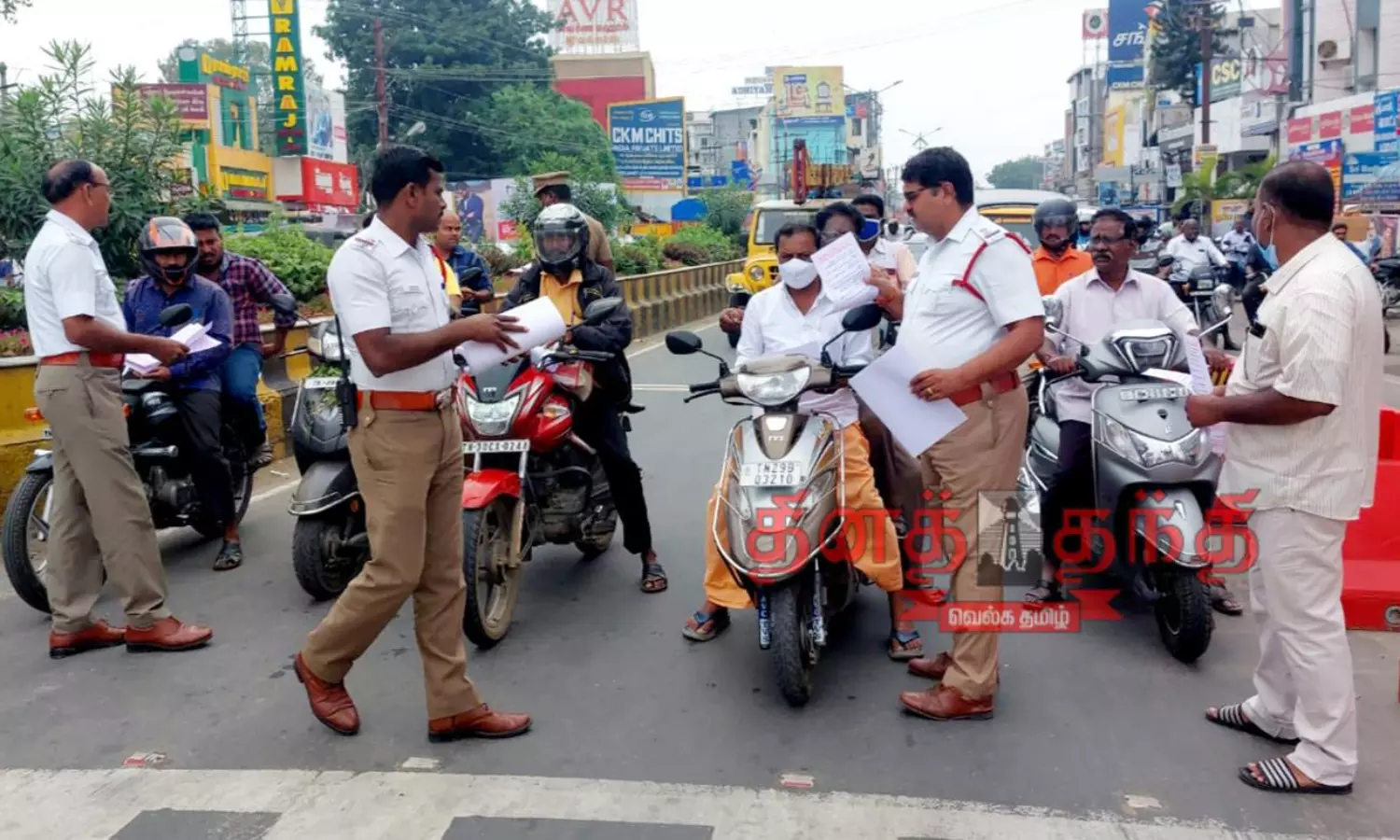 இந்த புதிய அபராதம் வசூலிக்கும் முறை தீவிரமாக கடைப்பிடிக்கப்படும். விதிமுறைகளை மீறும் வாகன ஓட்டிகளுக்கு உடனடி அபராதம் வசூலிக்கப்படும். எனவே வாகன ஓட்டிகள் அரசின் போக்குவரத்து விதிமுறைகளை முறையாக பின்பற்ற வேண்டும். மேலும் விதிமுறைகளை மீறுவோருக்கு உடனடி அபராதம் வசூலிக்கப்படும் என்று அவர்கள் எச்சரிக்கை விடுத்தனர். தொடர்ந்து வாகன ஓட்டிகளுக்கு போக்குவரத்து விதிமுறைகள் குறித்து விழிப்புணர்வு துண்டு பிரசுரங்களை போலீசார் வழங்கி அறிவுறுத்தினர்.