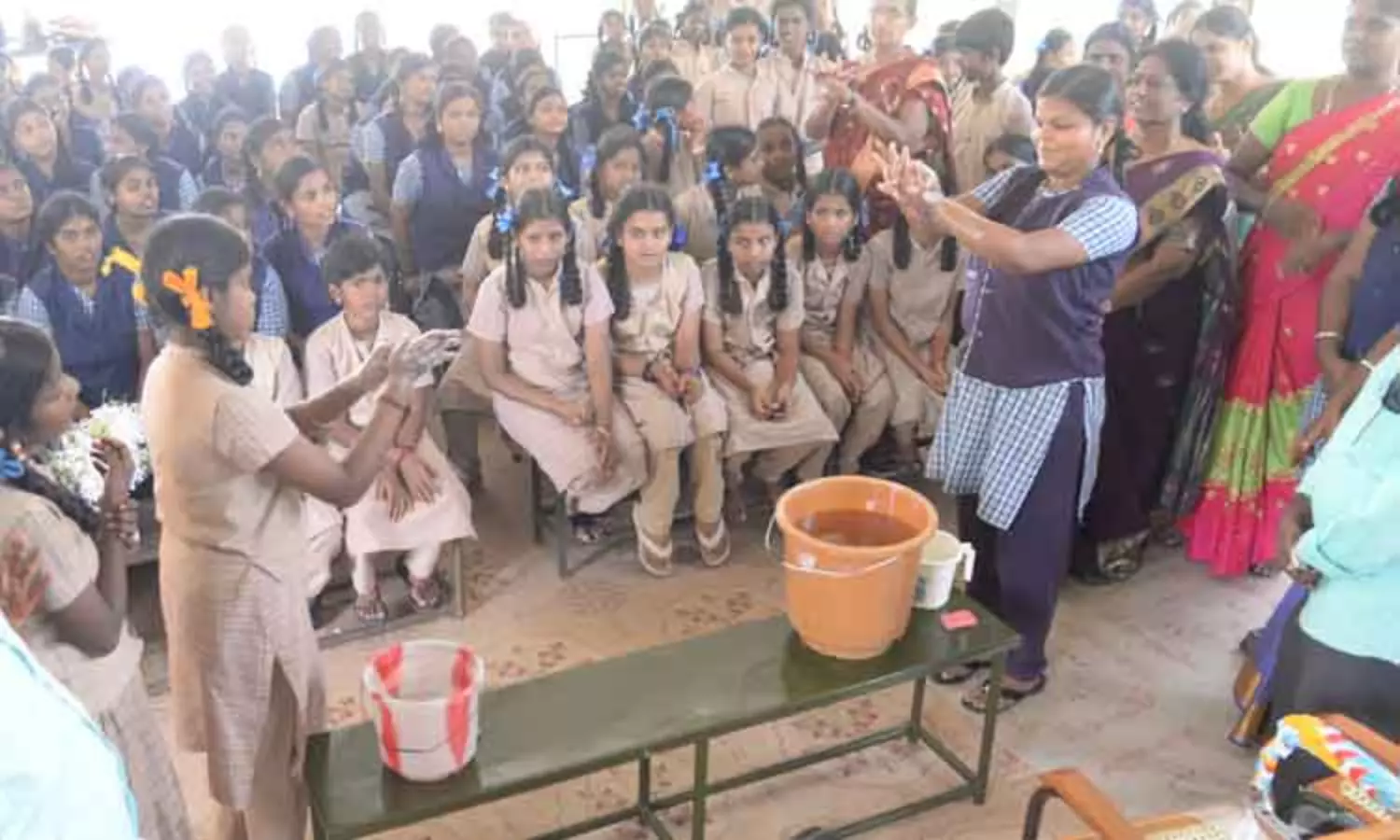 உலக கை கழுவுதல் தினத்தையொட்டி மாணவிகளுக்கு கைகள் கழுவுவதன் அவசியம் வலியுறுத்தி விழிப்புணர்வு புதுக்கோட்டையில் ராணியார் அரசு பெண்கள் மேல்நிலைப்பள்ளியில் நடைபெற்றது. இதில் மாணவிகள் தங்களது கைகளை சோப்பு போட்டு எவ்வாறு கழுவ வேண்டும், எந்தெந்த நேரங்களில் கழுவ வேண்டும் என்பதை விளக்கினர். இதில் பள்ளி தலைமை ஆசிரியை தமிழரசி மற்றும் உதவி தலைமை ஆசிரியர்கள், ஆசிரிய- ஆசிரியைகள், மாணவிகள் பலர் கலந்து கொண்டனர்.