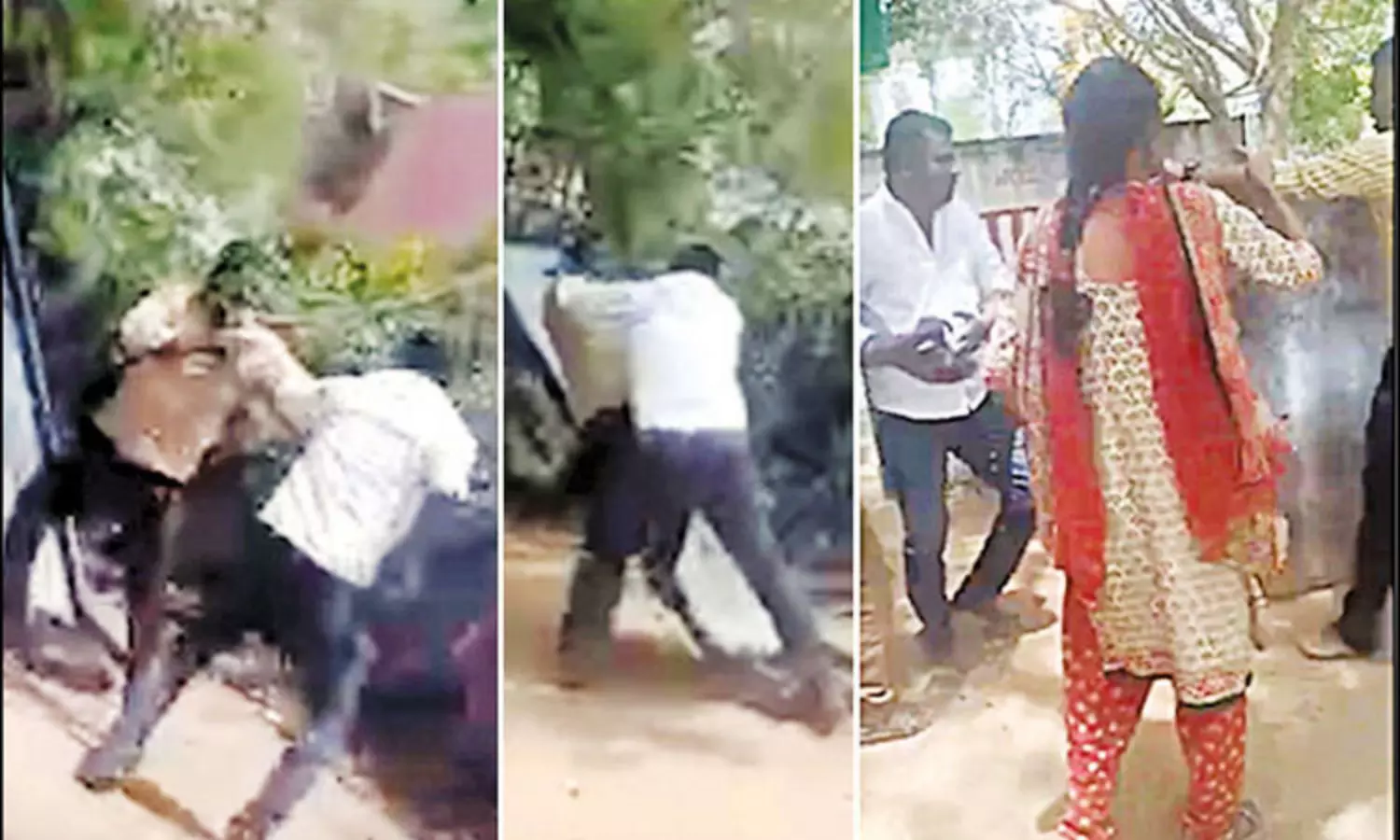 இந்த நிலையில் இதுதொடர்பாக கேட்பதற்காக முனியசாமி, சிவலிங்கம், செல்வி ஆகியோர் நேற்று மதியம் சுமார் 12 மணியளவில் பள்ளிக்கூடத்திற்கு சென்றனர். அங்கிருந்த ஆசிரியர் பாரத்திடம், என் குழந்தையை ஏன் அடித்தீர்கள் என்று கூறி தகராறு செய்தனர். பின்னர் அவரையும், அங்கு வந்த தலைமை ஆசிரியை குருவம்மாளையும் அடித்துள்ளனர். தொடர்ந்து அவர்களை ஓட, ஓட விரட்டி செருப்பால் அடித்து உதைத்ததாக கூறப்படுகிறது. மேலும் பள்ளியில் இருந்த நாற்காலிகளை சேதப்படுத்தி மிரட்டல் விடுத்து சென்றனர்.