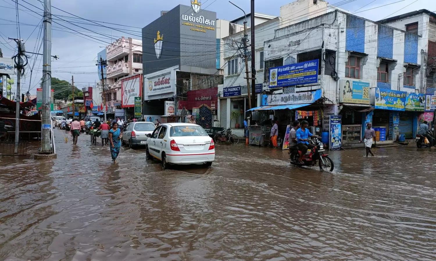 கும்பகோணம் பகுதியில் நேற்று மதியம் சுமார் 2 மணி நேரத்துக்கும் மேலாக பலத்த மழை பெய்தது. இந்த மழையால் நகரின் தாழ்வான பகுதிகளை மழை நீர் சூழ்ந்து வெள்ளம் போல் காட்சியளித்தது. இதனால் வாகன ஓட்டிகளும் பொதுமக்களும் மிகவும் சிரமப்பட்டனர்.கொட்டி தீர்த்த கனமழையால் பொதுமக்களின் இயல்பு வாழ்க்கை பாதிக்கப்பட்டது. மேலும் அறுவடைக்கு தயார் நிலையில் உள்ள குறுவை பயிர் மற்றும் நடவு செய்யப்பட்டுள்ள சம்பா பருவத்திற்கான நாற்றுகள் மழைநீரில் மூழ்கும் அபாயம் ஏற்பட்டுள்ளதால் விவசாயிகள் கவலை அடைந்து உள்ளனர்.மதுக்கூர், வேப்பங்குளம், கண்டியங்காடு, தளிக்கோட்டை ஆகிய ஊர்களில் நேற்று மாலை 5 மணியளவில் கன மழை பெய்தது. கன மழை காரணமாக வயல்கள், தென்னந்தோப்பில் தண்ணீர் தேங்கி நின்றது.