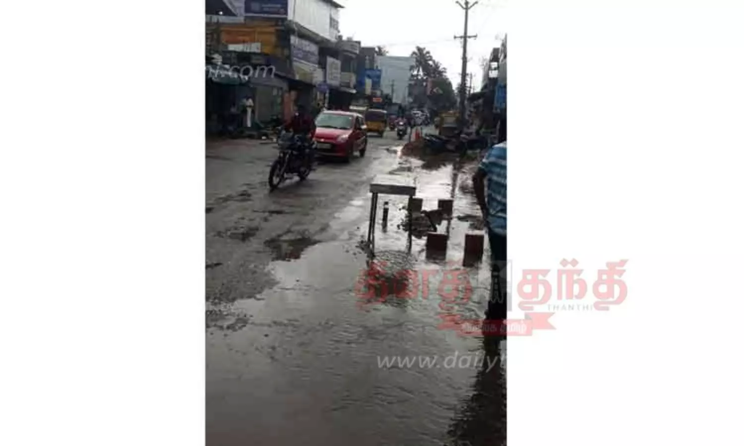 அதைத்தொடர்ந்து விபத்து நடந்த பகுதியில் உள்ள வியாபாரிகள் பள்ளத்தின் மேல் ஒரு மேஜையை வைத்து, எச்சரிக்கை பலகையும் வைத்தனர்.