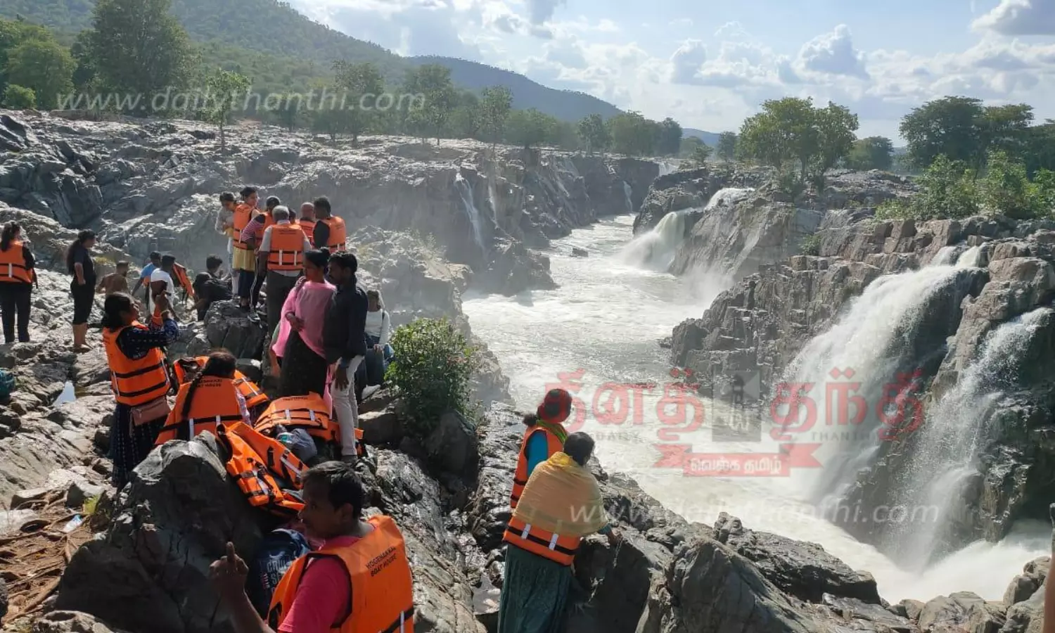 நேற்று விடுமுறை நாளில் ஒகேனக்கல் வந்த ஏராளமான சுற்றுலா பயணிகள் அருவியில் குளித்து மகிழ்ந்தனர். அசம்பாவிதங்களை தவிர்க்க காவிரி ஆற்றங்கரையோர பகுதிகளில் ஊர்க்காவல் படையினர், போலீசார் ரோந்து பணியில் ஈடுபட்டு வருகின்றனர்.