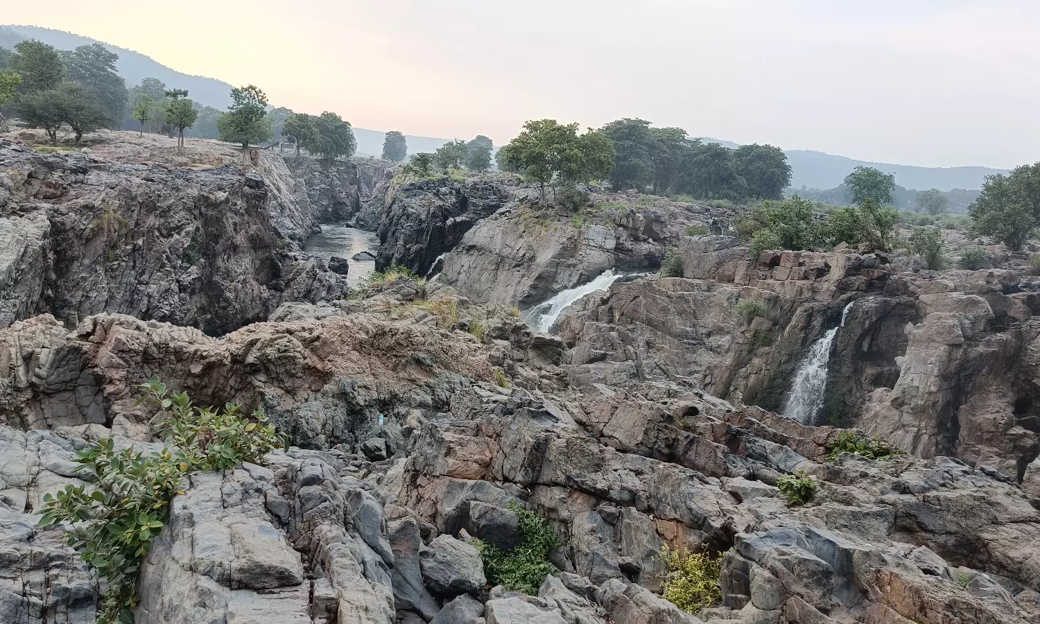 ஒகேனக்கல்லுக்கு நீர்வரத்து வினாடிக்கு2 ஆயிரம் கனஅடியாக குறைந்ததுதண்ணீரின்றி பாறைகளாக காட்சியளிக்கும் ஐந்தருவி