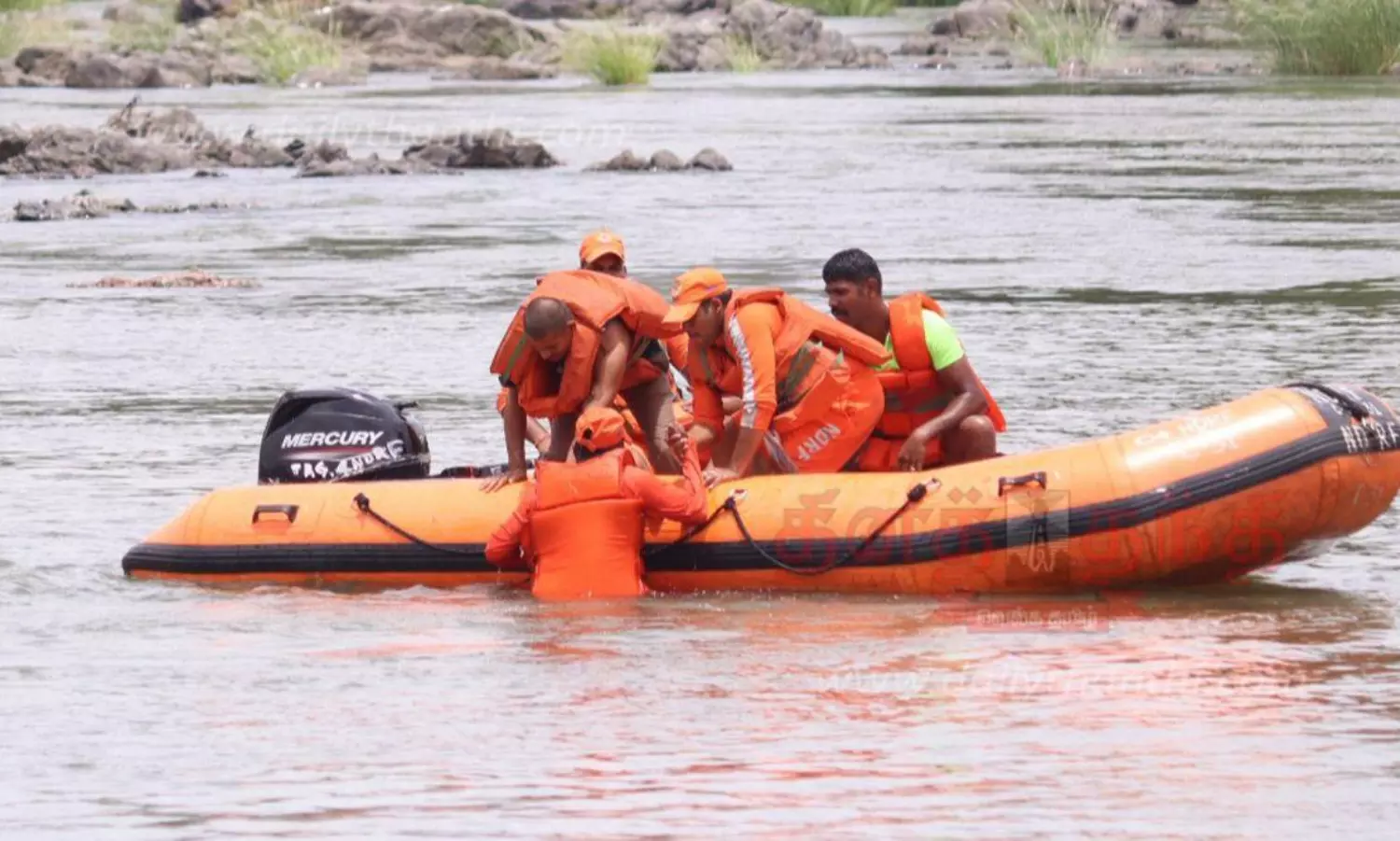 ஒகேனக்கல் காவிரி ஆற்றில் வெள்ளப்பெருக்கில் மூழ்கியவர்களை மீட்பது எப்படி? என்பது குறித்து தேசிய பேரிடர் மீட்பு குழுவினர் ஒத்திகை நிகழ்ச்சி நடத்தினர்.