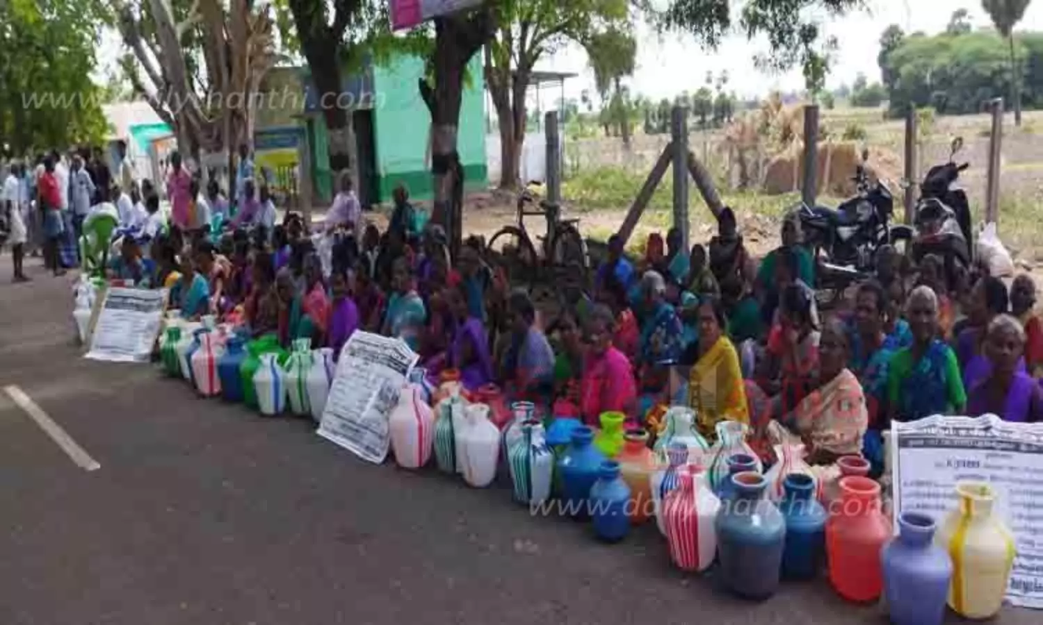 காலிக்குடங்களுடன் கிராம மக்கள் உண்ணாவிரதம்