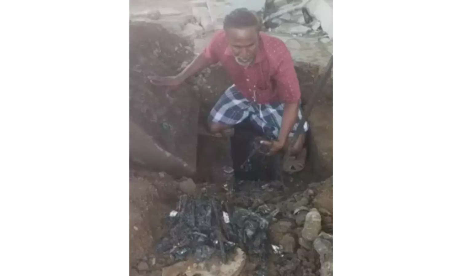 பெரியகுளத்தில்சாக்கடை கால்வாய் அடைப்பை கைகளால் அகற்றிய தூய்மை பணியாளர்