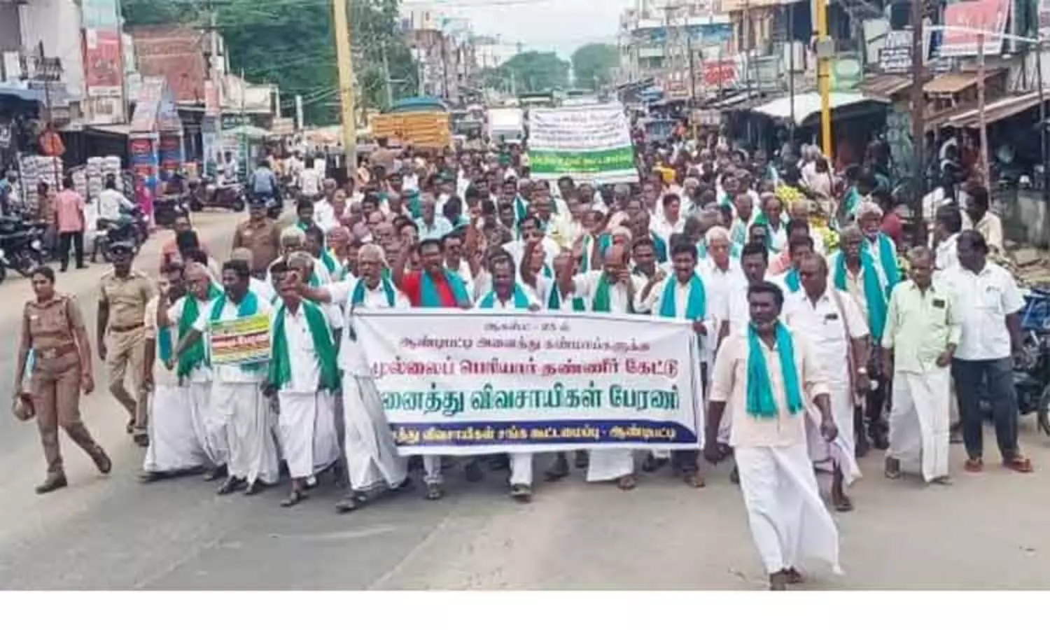 இந்நிலையில் இன்று இதே கோரிக்கையை வலியுறுத்தி ஆண்டிப்பட்டி அனைத்து விவசாயிகள் கூட்டமைப்பு சார்பில் ஊர்வலம் நடந்தது. ஆண்டிப்பட்டி தாலுகா அலுவலகம் முன்பு ெதாடங்கிய ஊர்வலத்திற்கு கூட்டமைப்பு தலைவர் சுரேஷ் தலைமை தாங்கினார். செயலாளர் தயாளன், பொருளாளர் ரகுநாதன் ஆகியோர் முன்னிலை வகித்தனர். ஊர்வலத்தை போடிதாசன்பட்டி ஊராட்சி மன்ற முன்னாள் தலைவர் வெங்கடேசன் தொடங்கி வைத்தார்.