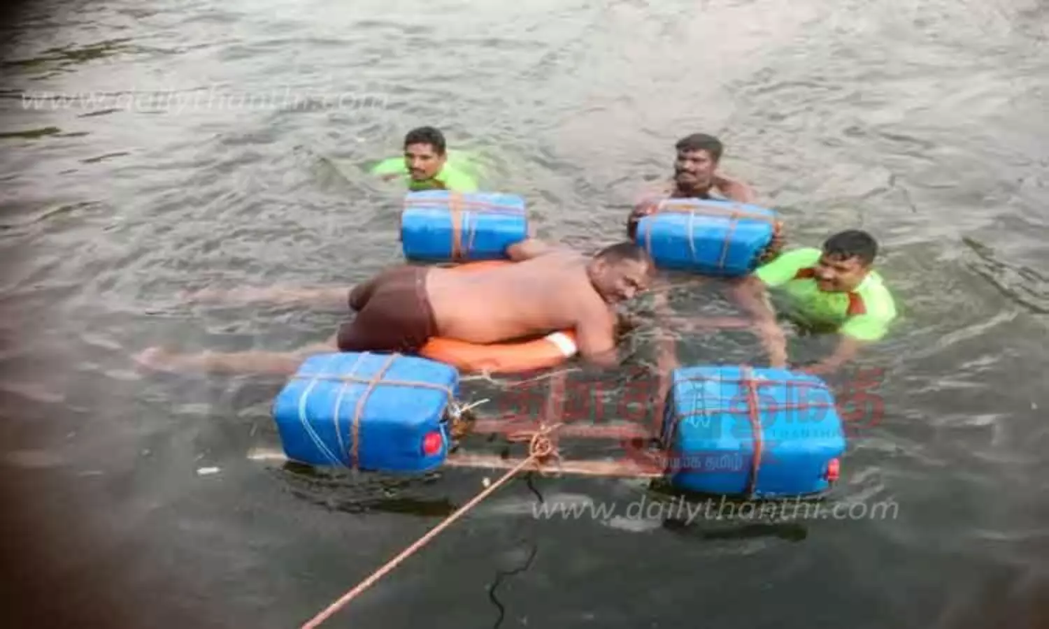பேரிடர் காலத்தில் தண்ணீரில் மூழ்கியவரை காப்பாற்றுவது எப்படி? பெருந்துறை தீயணைப்பு வீரர்கள் செயல்விளக்கம்