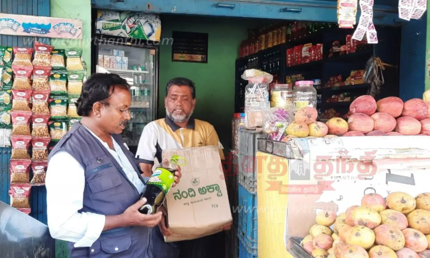 அப்போது சுத்திகரிக்கப்பட்ட குடிநீர் கேன்கள், குளிர்பானங்களில் உரிய தயாரிப்பு முகவரி, தயாரிப்பு தேதி, முடிவு தேதி மற்றும் உணவு பாதுகாப்பு உரிமம் உள்ளனவா என ஆய்வு செய்தார். இதையடுத்து 2 கடைகளில் காலாவதியான குளிர்பானங்கள், 2 லிட்டர் கொள்ளளவு கொண்ட 6 பாட்டில்கள் மற்றும் உரிய தேதி அச்சிடாத 20 லிட்டர் குடிநீர் கேன்கள் 10 ஆகியவை பறிமுதல் செய்து அழிக்கப்பட்டது. மேலும் கடை உரிமையாளர்களுக்கு தலா ரூ.1,000 அபராதம் விதிக்கப்பட்டது. திறந்த நிலையில் அதிக வெயில் பட்ட நிலையில் குளிர்பானங்கள் வினியோகம் செய்த விற்பனையாளருக்கு எச்சரிக்கை நோட்டீஸ் வழங்கப்பட்டு அபராதம் ரூ.1,000 விதிக்கப்பட்டது.