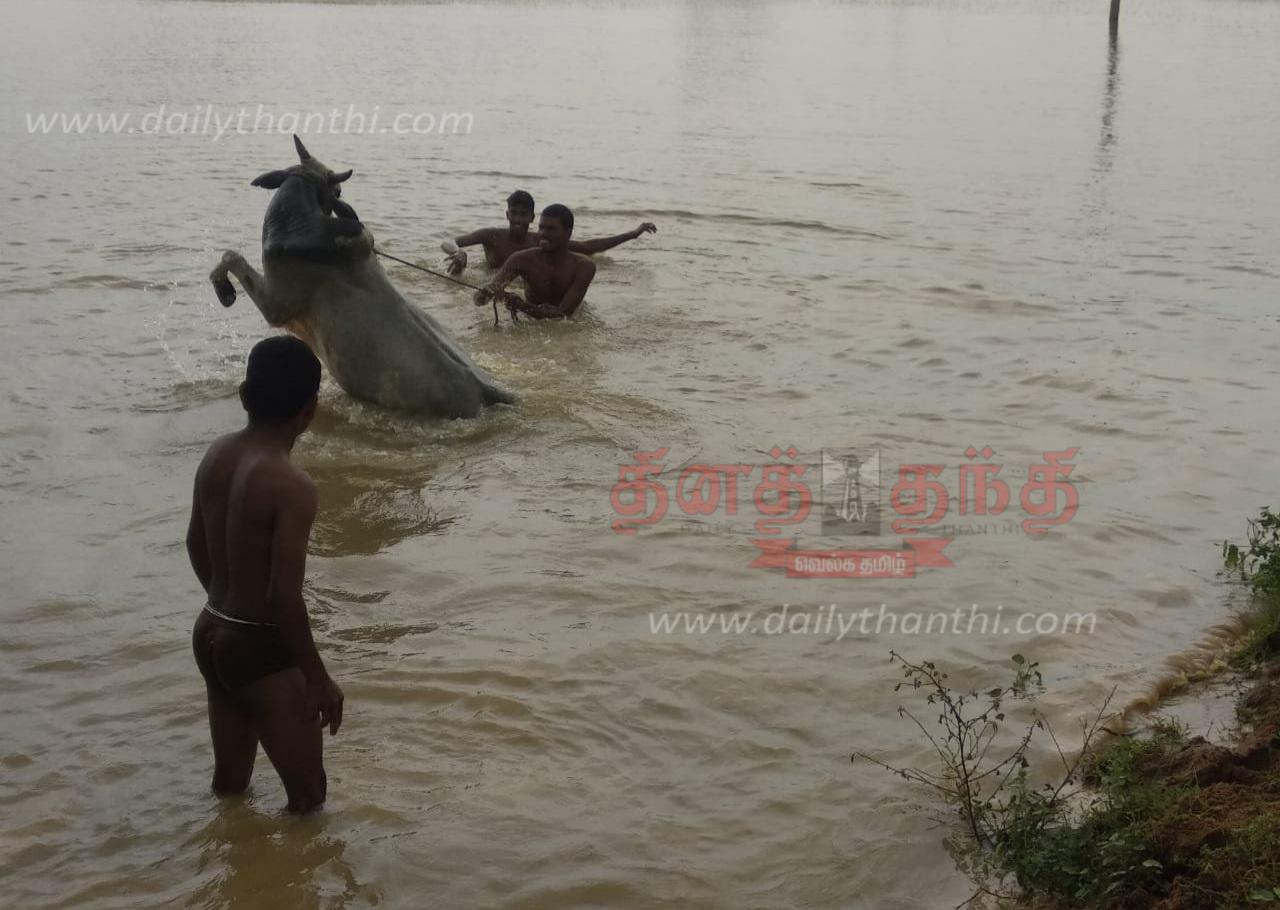 ஜல்லிக்கட்டுக்கு அனுமதி கிடைக்கும் என்ற நம்பிக்கையில் கறம்பக்குடி, ஆலங்குடி பகுதியில் உள்ள காளைகளுக்கு நீச்சல் மற்றும் பாய்ச்சல் பயிற்சி மும்முரமாக அளிக்கப்பட்டு வருகிறது.;