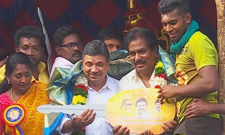மதுரை அவனியாபுரத்தைச் சேர்ந்த கார்த்திக் முதலிடம் பிடித்து காரை பரிசாக வென்றார்.;