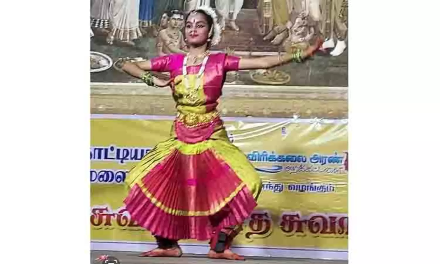 அரியலூர் மாவட்டம், ஜெயங்கொண்டம் பகுதியை சேர்ந்த ராம்குமார்-சூர்யா தம்பதியின் மூத்த மகள் ஓவியா(வயது 12). இவர் அரியலூர் அருகே ரெட்டிப்பாளையத்தில் உள்ள ஆதித்யா பிர்லா மெட்ரிக்குலேஷன் பள்ளியில் 7-ம் வகுப்பு படித்து வருகிறார். கும்பகோணம் அருகில் உள்ள சுவாமிமலை முருகன் கோவிலில் சிவராத்திரியன்று மாலை நடைபெற்ற நாட்டியாஞ்சலி நிகழ்ச்சியில் அவர் கலந்து கொண்டு, பரத நாட்டியம் ஆடினார்.