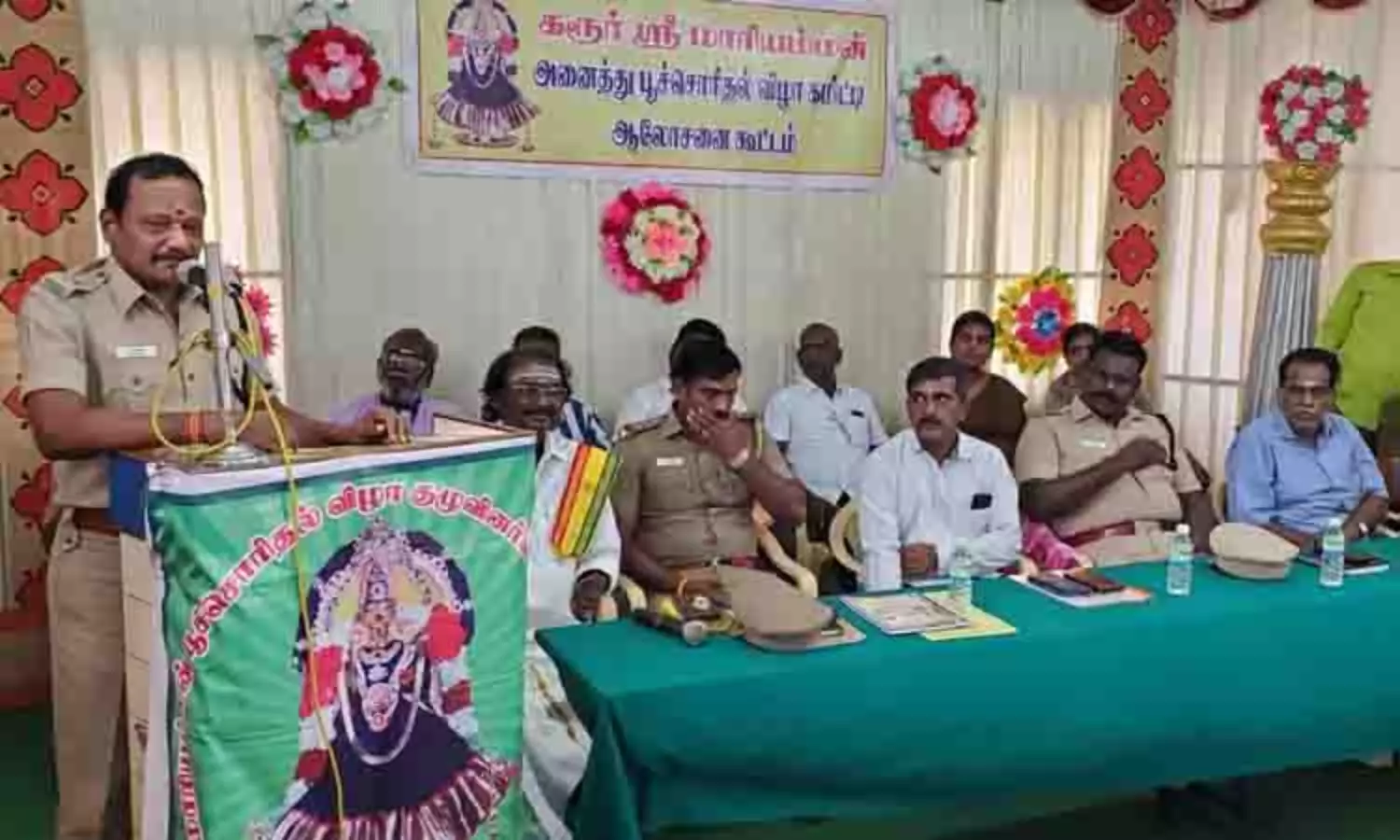 கரூர் மாரியம்மன் கோவில் பூச்சொரிதல் விழா: கூம்பு வடிவ ஒலிப்பெருக்கியை பயன்படுத்த கூடாது: ஆலோசனை கூட்டத்தில் அறிவுறுத்தல்