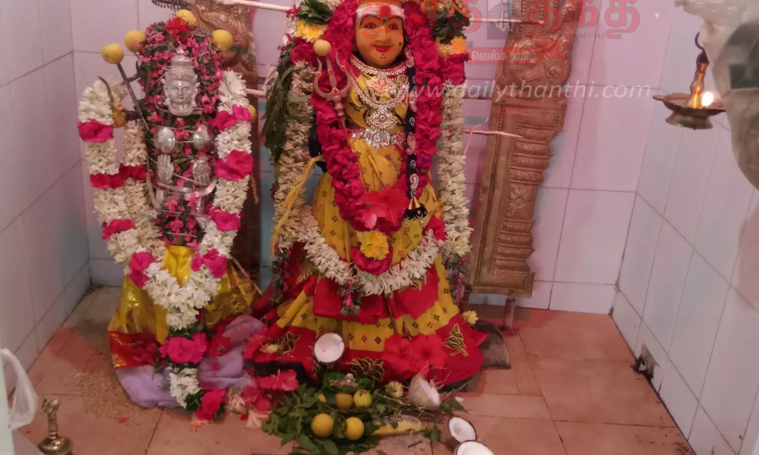 கரூர் மாவட்டம் நன்செய்புகழூர் ஊராட்சி தவுட்டுப்பாளையத்தில் உள்ள பகவதி அம்மன், மகாமாரியம்மன், கட்டிப்பாளையம் கருப்பண்ணசாமி கோவில் திருவிழா நடைபெற்றது. திருவிழாவை முன்னிட்டு கடந்த 25-ந் தேதி இரவு சுற்றுவட்டார பகுதிகளை சேர்ந்த பக்தர்கள் காவிரி ஆற்றுக்கு சென்று புனித நீராடி தீர்த்தக் குடங்களுக்கு சிறப்பு அபிஷேகம் செய்து தாரை தப்பட்டைகள் முழங்க தீர்த்தக் குடங்களுடன் ஊர்வலமாக பகவதி அம்மன் கோவிலை வந்தடைந்தனர். பின்னர் பூச்சூட்டுதல் நிகழ்ச்சி நடைபெற்றது. 26-ந் தேதி காலை கட்டிப்பாளையம் கருப்பண்ணசாமி கோவிலில் இருந்து பூசாரி வேல் எடுத்து கொண்டு வீதி உலா வந்தார். இரவு தவுட்டுப்பாளையம் பகவதி அம்மன், மாரியம்மன் மின் விளக்கு அலங்காரத்துடன் வீதி உலா நடைபெற்றது. நேற்று காலை கருப்பண்ணசாமி கோவிலில் கிடா வெட்டுதல் நிகழ்ச்சியும், மாலை பகவதி அம்மன் கோவிலில் பொங்கல், மாவிளக்கு பூஜை நடைபெற்றது. இதையொட்டி அம்மனுக்கு பால், தயிர், பன்னீர், இளநீர், சந்தனம், மஞ்சள், திருமஞ்சனம், பஞ்சாமிர்தம், தேன், விபூதி உள்ளிட்ட 18 வகையான வாசனை திரவியங்களால் அபிஷேகம் செய்யப்பட்டது. பின்னர் மலர்களால் அலங்காரம் செய்யப்பட்டு தீபாராதனை காட்டப்பட்டது. இதில் சுற்றுப்பகுதிகளில் இருந்து திரளான பக்தர்கள் கலந்து கொண்டு சாமி தரிசனம் செய்தனர். இதில் கலந்து கொண்ட பக்தர்கள் அனைவருக்கும் பிரசாதம் வழங்கப்பட்டது. இன்று (புதன்கிழமை) காலை மஞ்சள் நீராடல் நிகழ்ச்சி நடைபெறுகிறது. விழாவுக்கான ஏற்பாடுகளை கோவில் நிர்வாகத்தினர் செய்திருந்தனர்.