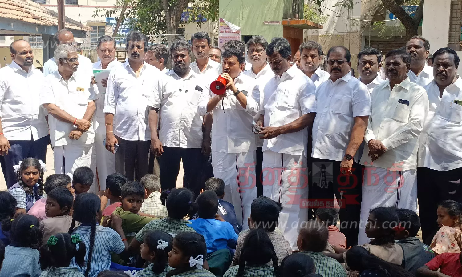 இந்த நிலையில் அ.தி.மு.க.வினர் நகரச் செயலாளர் டி.டி.குமார் தலைமையில் முன்னாள் ஒன்றிய குழு தலைவர் டாக்டர் என் திருப்பதி, ஒன்றிய செயலாளர் செல்வம், தொகுதி செயலாளர் கே. எம். சுப்பிரமணியம் உள்பட கட்சியினர் தாலுகா அலுவலகம் வந்து தாசில்தார் சிவப்பிரகாசம் மற்றும் வருவாய்த் துறையினரிடம் பேச்சு வார்த்தை நடத்தினர்.